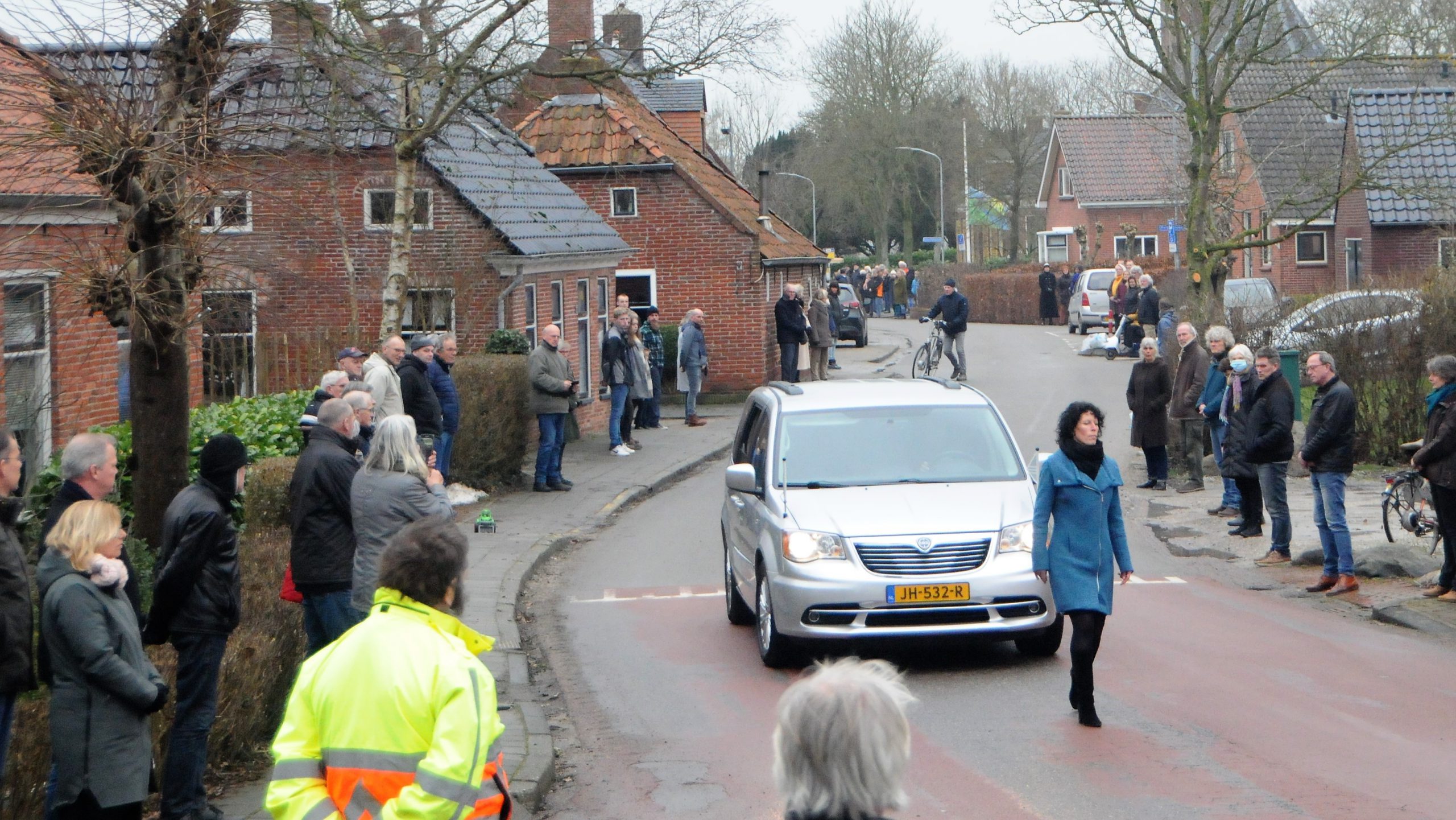 Garnwerd neemt afscheid van Harm Wegman 18 februari 202118 februari 2021 Whatsapp Share Share GARNWERD – De klok van de Sint-Ludgerkerk is woensdagmiddag een beetje van slag. De wijzers geven vier minuten over twee aan, terwijl het toch echt half vier is. De torenklok galmt trage, monotone klanken over het pittoreske dorp aan het Reitdiep. Het trage ritme van de klok gaat haast synchroon met de stappen van de voorloopster van de rouwauto die vanuit een klein huisje aan de Hunzeweg, oud-burgemeester, verkeersregelaar en markant mens Harm Wegman tussen een erehaag naar molen De Meeuw begeleidt. Langs de Hunzeweg vormen Garnwerders, Winsumers en andere geïnteresseerde mensen een imposante erehaag. Netjes, ingetogen en respectvol zien ze Harm aan zich voorbij gaan. De autoruiten van de rouwauto staan open, bloemen en tekeningen sieren de kist. Halverwege de Hunzeweg legt een aantal mensen er nog wat bloemen bij. Vlaggen aan de woningen hangen halfstok, de vlag op het voormalige schoolplein wappert zo mooi dat het op zwaaien lijkt, zwaaien naar Harm, nog eenmaal zwaaien naar Garnwerder Harm Wegman die aan zijn laatste reis bezig is. Dan klinkt er applaus, eerst voorzichtig, maar uiteindelijk luid en dankbaar. ‘Dank je wel Harm, dank je wel voor alles,’ klappen de handen tot de auto uit het zicht verdwijnt. De rouwauto nadert De Meeuw. De wieken van de prachtige molen staan in de rouwstand: niet helemaal in het midden, maar iets naar rechts. De kap is gedraaid naar het kleine huisje aan de Hunzeweg. ‘Er is een dierbare overleden,’ treuren de wieken. Het bankje naast de molen staat er maar eenzaam bij; op dat bankje zat Harm vaak over het Reitdiep te kijken, te mijmeren, te peinzen en maar weinigen wisten wat er in zijn hoofd omging. Al was Harm in gedachten verzonken, wanneer er meer dan twee auto’s en/of een aantal fietsers of wandelaars tegelijk het kruispunt naderden, dan was Harm direct op zijn post en leidde hij het verkeer in goede banen. De rouwauto is het dorpje nog niet uit of een aantal auto’s, een grote trekker, een openbaar vervoer-busje en een politieauto staan op elkaar te wachten op de Hunzeweg. Het snerpende fluitje blijft uit, het oranje hesje komt niet aansnellen. Garnwerd moet het voortaan zonder Harm Wegman doen. Hij zal gemist worden. Nieuws