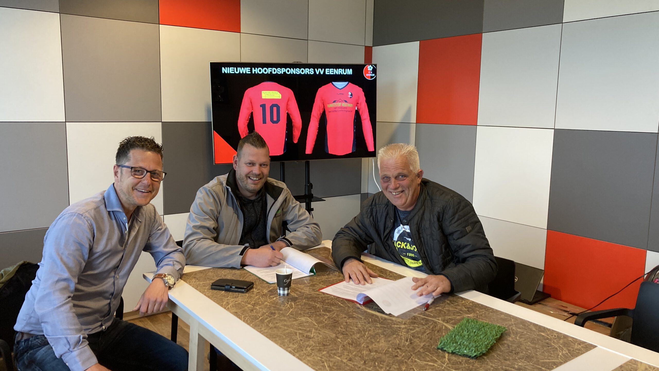 Nieuwe hoofdsponsors passen perfect bij ambities VV Eenrum 8 juni 20218 juni 2021 Whatsapp Share Share EENRUM – VV Eenrum heeft met ingang van het komende seizoen met Dakdekkersbedrijf Medema uit Kloosterburen en Hogeland kunststofkozijnen uit Winsum maar liefst 2 nieuwe hoofdsponsors. Onlangs tekenden beide bedrijven onder toeziend oog van voorzitter Herald Jansen een contract die hun voor de komende 3 jaren hoofdsponsor maakt van de nieuwbakken zaterdagvereniging. Recent kwamen voorzitter Herald Jansen en bestuurslid samenwerkingen Eric Schoenmakers in contact met Robert Benes van Hogeland Kunststofkozijnen en IJsbrand Medema van het gelijknamige dakdekkersbedrijf. VV Eenrum is de afgelopen periode niet alleen druk geweest met de complete renovatie van het sportpark, ook achter de schermen werd er veel werk verricht. Eric Schoenmakers vertelt trots dat hij samen met Herald Jansen vele mooie nieuwe samenwerkingen tot stand heeft kunnen brengen. “We zijn een actieve vereniging met heel veel actieve leden en vrijwilligers. En niet onbelangrijk is de hele positieve energie binnen de club. Het is prachtig om te zien dat heel veel puzzelstukjes nu mooi op hun plaats vallen.” “Het contact met Medema en Benes was vanaf het eerste moment goed, het is prachtig als je met je hoofdsponsor een mooie klik hebt”, vertelt voorzitter Jansen. Hij is ontzettend blij met beide nieuwe hoofdsponsors, en niet alleen om de daaruit vloeiende inkomsten. “Het is geweldig dat we met deze twee bedrijven een mooie samenwerkingen aan kunnen gaan en twee echte voetballiefhebbers binnenhalen, die graag betrokken willen zijn bij onze verenging. Beter kan echt niet”, glundert Jansen. “De club stapt komend seizoen over naar het zaterdagvoetbal, een enorme stap die we nu kunnen gaan nemen met de ondersteuning van deze prachtige overeenkomst. We gaan flink investeren in onze vereniging en daar is dit een mooi voorbeeld van vervolgt Jansen. Onze eerste selectie wordt niet alleen in een nieuwe tenue gestoken, ook komen er prachtige trainingspakken, warme coachjassen, nieuwe sporttassen en presentatiejassen. Daarnaast willen we flink aan de gang om de randzaken rondom de eerste selectie op en top te gaan regelen. Nadat we eind vorig jaar het contract met onze hoofdtrainer Klaas van der Ploeg hebben verlengd en met Wouter Jongsma een geweldige nieuwe betrokken elftalleider hebben gevonden, is dit weer een mooie volgende stap”, vertelt Jansen. Eric Schoenmakers (links op de foto) is ervan overtuigd dat er mooie tijden aankomen voor de roodbaadjes. “Komend seizoen zal best een pittig seizoen gaan worden sportief, maar hoe mooi kan het straks weer worden, na corona weer lekker voetballen en voetbal kijken. En dan iedere zaterdag op een meer dan prachtige accommodatie met op en top gezelligheid met alle leden op één dag. Robert Benes (rechts) is blij met z’n hoofdsponsorschap bij VV Eenrum. Hij is onlangs gestart met z’n onderneming in Winsum en wilde graag iets bij de club doen. Benes zit niet alleen in de kunststofkozijnen, hij is daarnaast ook nog eens hoofdtrainer van VV Stedum. Het zou zo maar kunnen zijn dat hij met zijn Stedum komend seizoen tegen VV Eenrum moet gaan spelen. “Mooi toch” lacht Benes “prachtig al die streekderby’s, een super zet dat Eenrum nu ook naar de zaterdag gaat. IJsbrand Medema (midden) vindt het mooi om samen met Benes dit sponsorschap aan te gaan bij de Eenrumers. “VV Eenrum is een club naar mijn hart: niet lullen maar poetsen is hier het credo. Moet je eens kijken wat ze hier allemaal met hun vrijwilligers hebben neergezet in de afgelopen periode. Petje af”, besluit Medema. Onlangs maakte een deel van de A-selectie kennis met de nieuwe sponsors en maakten zij gezamenlijk een mooie online promo film die momenteel flink rondgaat. Nieuws Sport