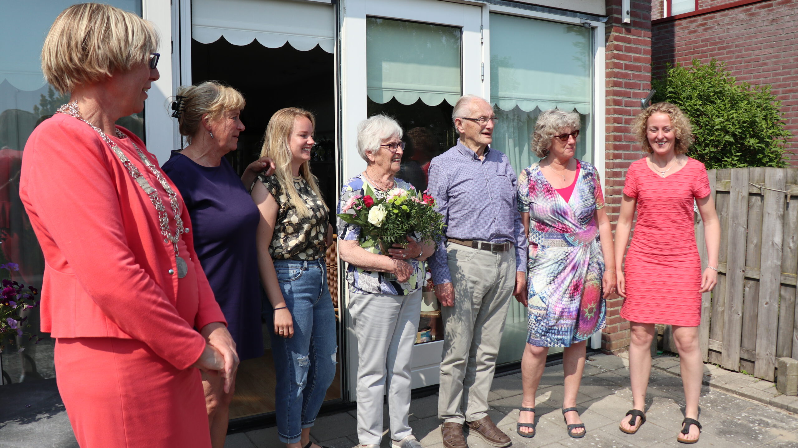 BAFLO – Woensdag 9 juni kreeg het echtpaar Wiersema-Oosting in Baflo bezoek van wethouder Mariëtte de Visser. Zij kwam het paar dat 60 jaar geleden in het huwelijk trad namens de gemeente feliciteren.
