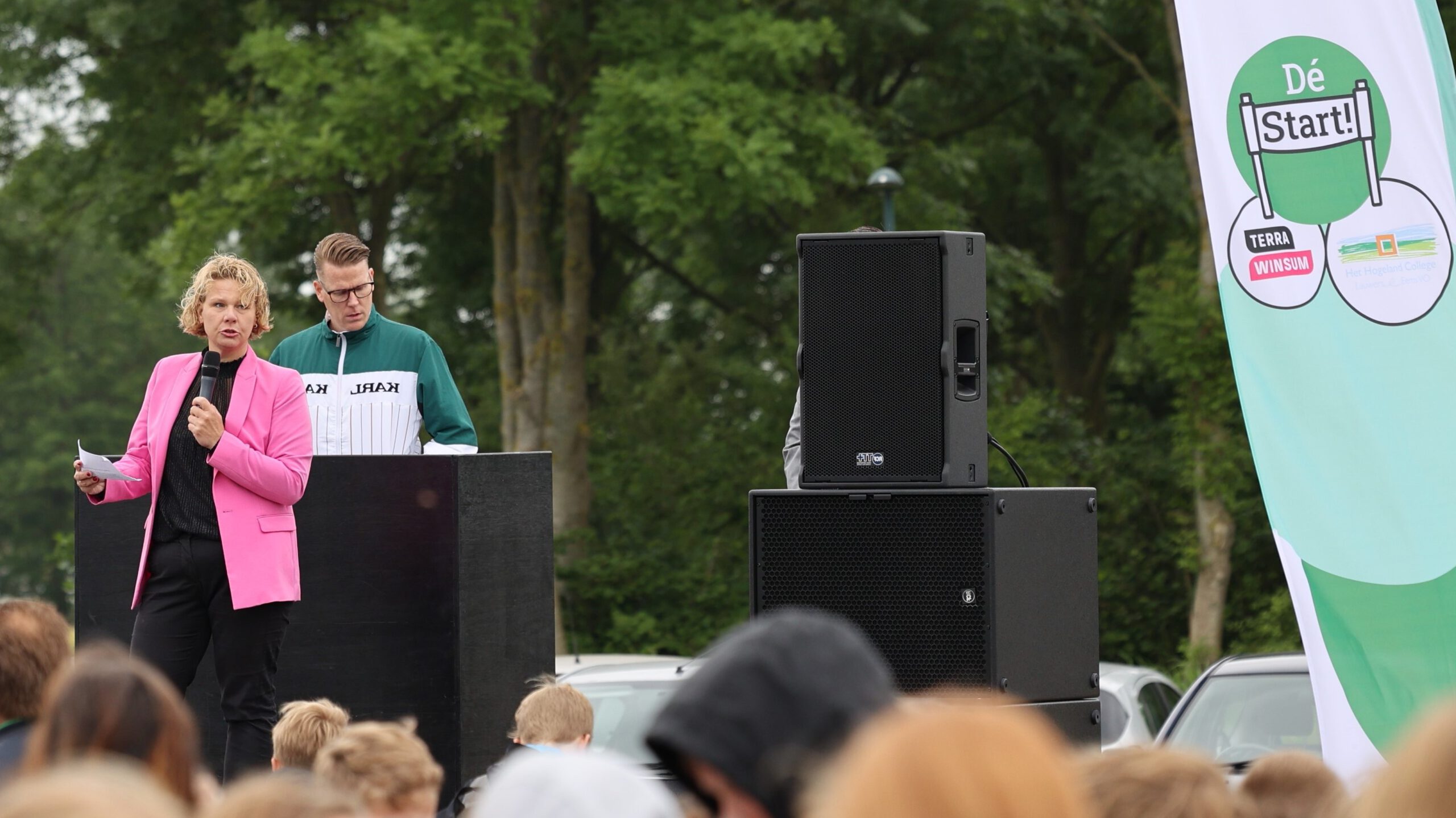 Succesvolle start van een samenwerking tussen twee vmbo-scholen in Winsum 12 juli 2021 Whatsapp Share Share WINSUM – Onlangs hebben leerlingen van Het Hogeland College in Winsum en Terra Winsum met elkaar kennisgemaakt. De kennismaking stond in het teken van de start van de samenwerking tussen beide scholen. Eerstejaars leerlingen van beide scholen ontmoetten elkaar deze dag bij voetbalvereniging VV Winsum. Door met elkaar sportieve en ‘groene’ activiteiten uit te voeren, hebben ze op informele wijze kennis met elkaar kunnen maken. Een aantal jaren geleden zijn de besturen van CSG Winsum, Het Hogeland College en Terra Winsum met elkaar rond de tafel gegaan om te spreken over nadere samenwerking. Het doel van de samenwerking is het behoud van een volwaardig en kwalitatief hoogwaardig vmbo-aanbod in de gemeente Het Hogeland. De urgentie zit in de demografische krimp en een daling van het aantal leerlingen als gevolg. De eerste stap is inmiddels gerealiseerd: de samenvoeging van CSG Winsum en Het Hogeland College locatie Wehe-den Hoorn met ingang van 1 augustus 2020. De volgende stap is een samenwerking tussen Het Hogeland College en Terra Winsum. Beide hebben de ambitie om in Winsum samen te werken in projecten met als doel het aanbod aan vmbo-onderwijs op langere termijn zo aantrekkelijk mogelijk te houden voor leerlingen en de regio. Beide scholen vinden het van groot belang dat de leerlingen elkaar leren kennen. Daarom is deze kennismakingsdag georganiseerd. Het was de bedoeling om deze dag al eerder te organiseren, maar door de coronamaatregelen was dit niet mogelijk. De kennismakingsdag is tevens de officiële aftrap om een start te maken met de samenwerking tussen beide scholen. Circa 225 eerstejaars leerlingen van beide scholen kwamen bij elkaar bij voetbalvereniging VV Winsum. Hier vond de opening plaats vanuit de directie van beide scholen, gevolgd door een openingswoord van wethouder Kristel Rutgers. Na deze opening kwam er een spetterend optreden van de Groninger act WatAans! Vervolgens gingen de leerlingen gemixt deelnemen aan een tweetal workshoprondes, die een sportief en groen karakter hadden. Deze circa twintig workshops vonden plaats in de omgeving van het prachtige Winsum. Hierbij ging het om workshops zoals kanoën, dierhouderij, biologische kunst met bloemen en koken. Nieuws
