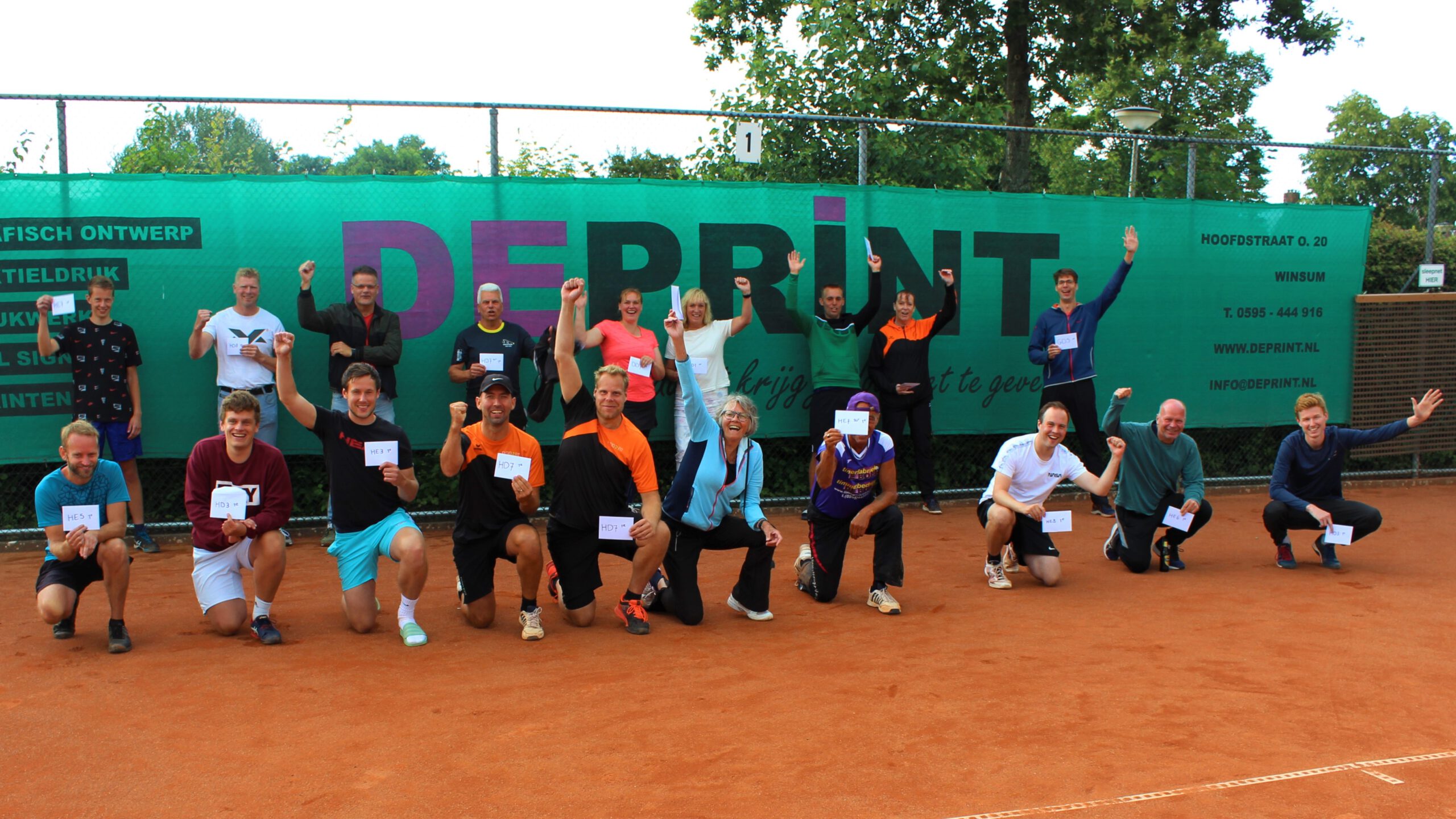 Winsum Open zonnig afgesloten, titelfavoriet Joris Jurna opnieuw winnaar 2 augustus 20212 augustus 2021 Whatsapp Share Share WINSUM – Tennisser Joris Jurna heeft zondag met overtuiging de hoogste categorie van het De Print Winsum Open gewonnen. De voormalige Lopster won in de herenenkel 3 met 6-2 6-2 van Stadjer Rob Leong. Jurna won zijn eerdere wedstrijden ook al met groot gemak. In vijf wedstrijden hoefde hij afgelopen week slechts twaalf games in te leveren. In 2018 won hij ook al het toernooi. Het tennistoernooi werd voor de dertigste keer gehouden op het tennispark van Winsum. Vorig jaar kon het niet doorgaan vanwege het coronavirus. Dit jaar zijn tennistoernooien wel weer toegestaan en deden tweehonderd deelnemers uit de regio mee, waaronder de nodige Winsumers. Zo speelde het TC Winsum-duo Steven de Groot en Paul Drent zondag een finalepartij tegen Stadjers Edwin Duursema en Martijn Vast. De thuisspelers verloren hun wedstrijd met 6-2 6-2. Duursema en Vast, ook opgegroeid in Noord-Groningen, waren in de rally’s een stuk vaster dan hun opponenten. Bafloër Alfred Kiers wist in de herenenkel 5-finale niet te winnen van Rienk de Boer uit Hoogkerk. In de gemengddubbel 6 boekte Kiers wel een knappe overwinning. Samen met Bianca Kuiper uit Bedum won hij na een marathonpartij van drie uur van Marjanne van der Bijl en Daan Vermei. In de beslissende derde set stonden Kiers en Kuiper nog met 3-0 achter, maar zij wisten terug te komen en die set uiteindelijk met 6-4 te pakken. Niels Loonstra van TC Usquert boekte goede resultaten in de 7. Samen met zijn zus Simone behaalde hij de halve finale in de gemengddubbel. In de enkel won hij van Theo Medema uit Winsum met 6-2 6-4. In de damesenkel 7 was Maaike van Nieuwstadt uit Winsum na drie wedstrijden overtuigend de sterkste. De herendubbel 7 was een Winsumer onderonsje. Daarin won fysiotherapeut Neil Judkins met zijn partner Ramon Kauw van Henk de Groot en Kornelis Prins. De Groot kwam ook uit in de gemengddubbel 7. In die finale verloor hij met partner Marieke Zomer van clubgenoten Wilga Schuuring-Warringa en Chris Bijleveld. De Winsumer Joop Bakker kende een lange maar succesvolle dag. Hij won eerst al in een driesetter de finale van de herenenkel 7/50+ van dorpsgenoot Koos Keijer. Daarna won hij eveneens in een driesetter de gemengddubbel 8 met Paula Witte tegen Sanne Spijker en Evert Nijhof. Het toernooi kreeg dit jaar een aantal pittige regenbuien te verduren. Bij de start van de finales zondagochtend viel er dermate veel regen, dat er enkele uren niet gespeeld kon worden. Rond het middaguur waren de negen gravelbanen weer bespeelbaar en konden alle finales op het tennispark uitgespeeld worden. Tekst + foto: Martin Drent Sport