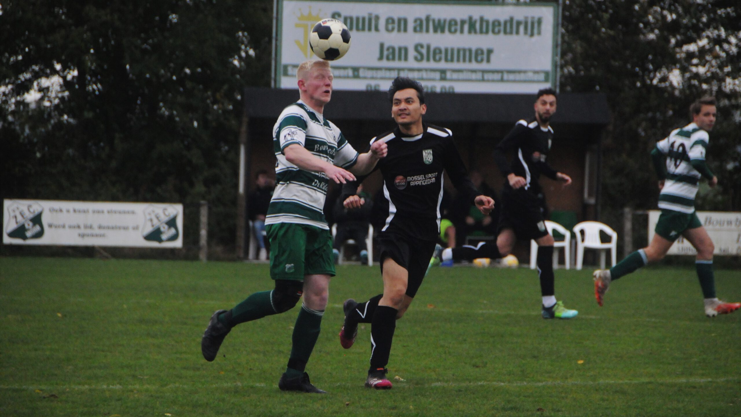 ZEC thuis onderuit tegen Meedhuizen 7 november 2021 Whatsapp Share Share ZANDEWEER – ZEC heeft zaterdag de thuiswedstrijd tegen VV Meedhuizen verloren. De gasten scoorden voor en na rust één keer, terwijl het team van trainer Marinus Siekman het net niet wist te vinden. De overwinning van de club uit de gemeente Eemsdelta, voorafgaande het seizoen bestempeld als titelkandidaat, was gezien het spelbeeld over negentig minuten verdiend. De eerste helft was zeer vermakelijk. Beide teams lieten goed voetbal zien (voor vijfdeklassers) en kansen waren er voor beide doelen. Zo kreeg Vincent Zijlstra in de 4e minuut een goede mogelijkheid ZEC op voorsprong te zetten na geklungel in de defensie van Meedhuizen. Jammerlijk schoot Zijlstra vrij voor doelman Ufuk Kutyol te gehaast en ruim naast, waar de verre hoek helemaal open lag. Binnen drie minuten kregen de gasten ook twee doelkansen. Zo schoot Louis Stokhof de Jong via ZEC-verdediger Jasper Dijk naast en zag Lirim Shabani zijn snoeiharde vrije bal van buiten de ‘zestien’ door ZEC-goalie Nick Blok gekeerd. De rebound werd vervolgens door Mergim Shabani van dichtbij over geschoten. Een leuk begin van de gelijk opgaande wedstrijd, die halverwege de eerste helft kantelde in het voordeel van de gasten. Meedhuizen-spits Stokhof de Jong moest geblesseerd het veld verlaten en werd vervangen door Kevin Reiffers, die op de bank was begonnen omdat hij ziek was geweest. Met Reiffers in het team was het binnen 30 seconden al bijna raak. Hij speelde zich vrij tussen twee Zandeweersters, zette een combinatie op met Jojo Fernandes, maar schoot vervolgens net voorlangs. Twee minuten later probeerde Reiffers het van zo’n 25 meter, maar dit keer verdween de bal rakelings over het doel. In de 35ste minuut was het dan wel raak en kwam Meedhuizen verdiend op voorsprong. Een prachtige dieptepass van Nayim Ouakili bereikte de geheel vrijstaande Kevin Reiffers, die vrij voor ZEC-doelman Nick Blok geen fout maakte en beheerst binnen schoot, 0-1. Even daarvoor had ZEC in de omschakeling ook een goede mogelijkheid gehad om te scoren. Nadat doelman Kutyol van Meedhuizen met de voet redding had gebracht op een inzet van Vincent Zijlstra, werd de rebound door Robin Stoter in een keer wild en hard de ballenvanger ingewerkt, terwijl hij alle tijd had om de klus rustig te klaren. Toch wist ZEC na de tegentreffer tot aan de rust nog meer kansen te creëren, alleen zat het in de afwerking niet mee. Zo wist Meedhuizen-verdediger Wim Jansema een inzet van Robin Stoter net voor de doellijn weg te werken en blokte diezelfde speler nog geen minuut later een van dichtbij ingeschoten schot van Kjell Posthumus. Op slag van rust leek ZEC dan alsnog langszij te komen toen Ingmar Blaauw diep werd gestuurd en een goede schietkans kreeg. Zijn inzet werd echter ternauwernood door doelman Ufuk Kutyol met de voet naast gewerkt. De hoekschop die volgde werd goed voorgebracht door Vincent Zijlstra, maar verdween de kopbal van ZEC-aanvoerder Kjell Posthumus net naast de voor ZEC verkeerde kant van de paal. Zo werd er met 0-1 gerust. De tweede helft was in vergelijking met de eerste 45 minuten aanzienlijk minder leuk om te aanschouwen. Foutieve passes en onderlinge irritaties zorgden ervoor dat er weinig meer goed ging bij de thuisploeg. Ook bleek Meedhuizen in de duels scherper. Met name Jairzinho Leirissa, stofzuiger op het middenveld, ontregelde veelvuldig het spel van ZEC door nagenoeg alle duels te winnen en er vervolgens iets goed mee te doen. Zo kwam de thuisploeg na rust niet meer aan een goede aanval toe en hoefde de doelman van de gasten niet meer in actie te komen. Het was dan ook niet raar dat Meedhuizen na een uur spelen de score verdubbelde. Uit een voorzet van Kevin Reiffers was het Edy Silva Lima die geheel vrijstaand bij de tweede paal op doel kopte. ZEC-goalie Nick Blok wist de inzet nog te keren, maar in de rebound was Silva Lima wel trefzeker, 0-2. Hierna kregen de gasten nog een aantal mogelijkheden om de voorsprong uit te bouwen, maar Nick Blok was deze middag goed op dreef en wist met enkele goede reddingen zijn ploeg voor een geflatteerde uitslag te behoeden en groeide uit tot de beste speler van de Zandeweersters. In de 71ste minuut kwam de doelman 1 op 1 met Kevin Reiffers en wist als winnaar uit dit duel te komen en enkele minuten later wist Blok een vrije bal van diezelfde Reiffers uit z’n doel te ranselen. Geluk had Blok toen tien minuten voor tijd Rafaël Leirissa, na een prachtige dieptepass van Martijn Groenhagen, voor z’n neus verscheen en net voorlangs schoot. Zo bleef het bij 0-2. In de slotminuten hoopten de irritaties binnen de lijnen zich nog wat op, met een opstootje tot gevolg. Bijna iedereen, ook begeleiding, bemoeide zich ermee, maar het liep uiteindelijk met een sisser af. Scheidsrechter Ties Prins, die prima floot, toonde de aanstichters van het relletje de gele kaart en daarmee was het af. Toch werd de wedstrijd niet met 22 spelers beëindigd. Een gefrustreerde Robin Stoter, die totaal niet in de wedstrijd zat, maakte in extra tijd nog een domme, onnodige overtreding, ontving daarvoor z’n tweede gele kaart en kon vroegtijdig inrukken. Hij mist daardoor de ‘burenruzie’ Noordpool UFC – ZEC die over twee weken op de kalender staat./AT Nieuws Sport