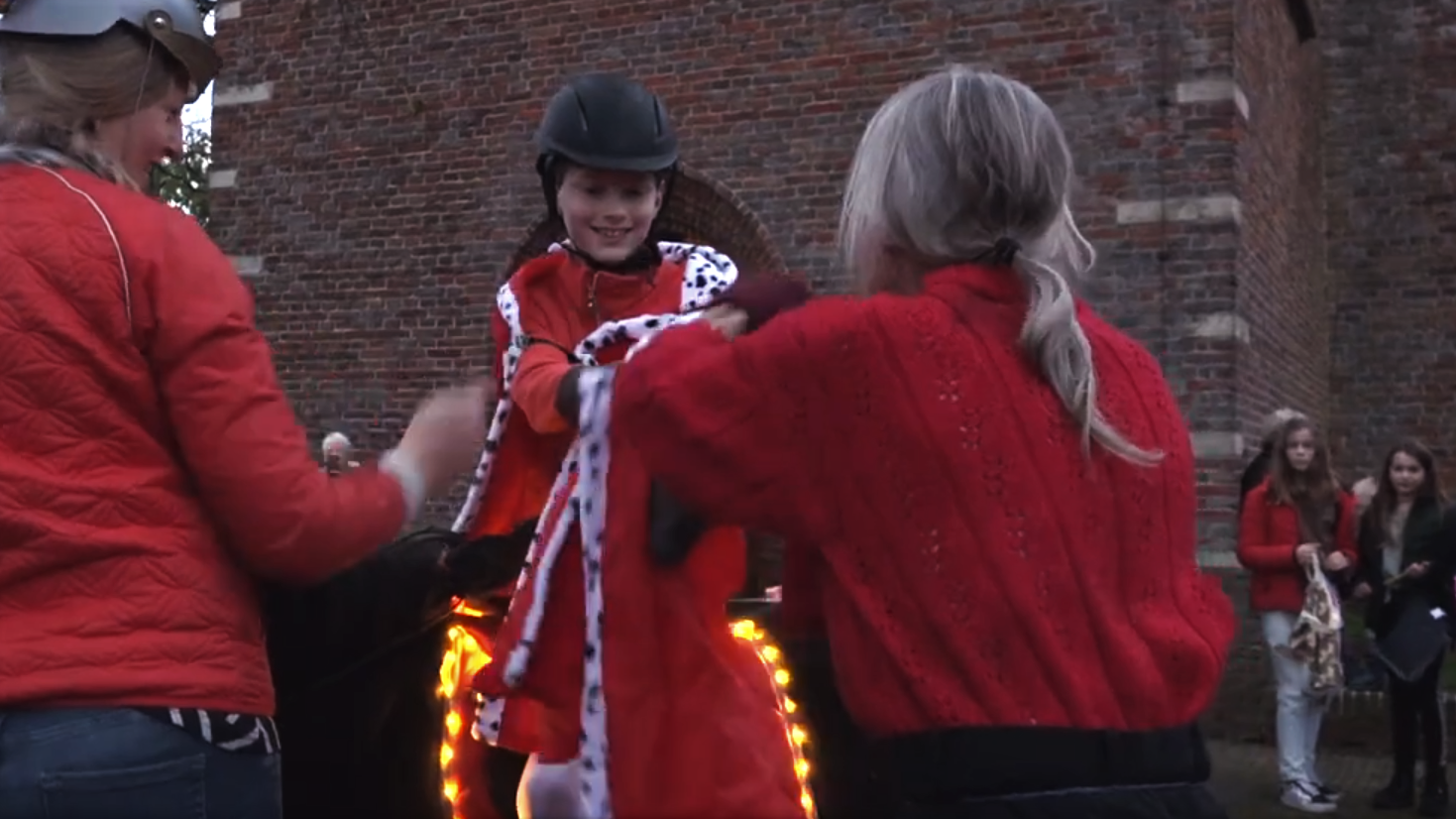 Sint Martinus deelt mantel met bedelaar 12 november 202112 november 2021 Whatsapp Share Share Overal in het land werd op 11 november weer ‘Sint Maarten’ gevierd. Kinderen langs de deuren, in ruil voor een liedje iets lekkers in de (snoep)tas terugkrijgend. Willem Kroon toog met camera naar Eenrum, waar hij – naast de liedjes aan de deuren – Sint Martinus te paard nabij de kerk tegen het lijf liep. Hier gaf Martinus – onder toeziend oog van vele belangstellenden – de helft van zijn mantel aan een bedelaar. Nieuws