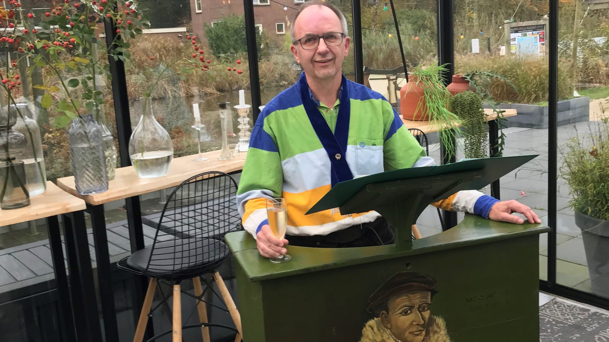 Rederijkerskamer Praedinius viert 150-jarig bestaan 19 november 2021 Whatsapp Share Share WINSUM – Zondag 14 november jl. verwelkomde voorzitter Koert Snitjer van de Rederijkerskamer Praedinius uit Winsum ereleden, (oud-)leden, donateurs en andere genodigden bij ’De Jongens uit de Buurt’ om het 150-jarig bestaan van de vereniging te vieren. Op drie dagen na was het inderdaad 150 jaar geleden dat meester Zuidema samen met elf andere ‘jongens uit de buurt’ ter bevordering van de welsprekendheid de vereniging in het leven riep, in navolging van meer dan 900 van dergelijke verenigingen elders in het land. De naam van de vereniging ontleende Zuidema aan de humanistische geleerde Reinder Veldman, beter bekend als Regnerus Praedinius ( † 1559) wiens vader in Winsum een boerderij (praedium) bezat. Op humorvolle wijze doorliep Snitjer interessante gebeurtenissen uit de rijke historie van de vereniging om daarna achtereenvolgens het woord aan diverse sprekers te geven. Praedinius kent tot op de dag van vandaag maandelijkse bijeenkomsten waarop de leden gedichten of eigen werk voordragen en hun vaardigheden in memorisaties en improvisaties oefenen. Vonden die bijeenkomsten in vroeger jaren wegens het ontbreken van straatverlichting bij voorkeur bij maanlicht plaats, het jubileum werd gewoon bij daglicht gevierd maar overigens werd door de sprekers een aardig beeld gegeven van het verloop van zo’n maandelijkse bijeenkomst. Zo werd gevoelige poëzie voorgedragen, o.a. door erelid Els Ausema, ooit winnares van de Prijs bij Uitnemendheid op het concours van het Koninklijk Provinciaal Rederijkers Verbond, het overkoepelend orgaan van de Groninger rederijkerskamers. Andere sprekers droegen door henzelf geschreven verhalen voor of refereerden aan het rijke toneelverleden en natuurlijk ontbraken ook feestredes niet terwijl ondertussen de luisteraars genoten van de versnaperingen. In zijn slotwoord droeg Snitjer de Kronkel ‘Sneeuw’ van Simon Carmiggelt voor waarin met een behoorlijke dosis spot het amateurtoneel op de hak genomen wordt. Tevens sprak hij de hoop uit dat onder andere door de onder de jeugd populaire hashtag BookTok op TikTok de belangstelling voor de literatuur weer zal toenemen en dat daarmee ook de toestroom van met name nieuwe jonge leden weer op gang komt. Als sluitstuk van de middag hielp oud-lid Anneke Bakema de aanwezigen weer ‘Op Weg’ met dit gedicht van Albert van Ham, oud-lid en -regisseur. Foto: Voorzitter Koert Snitjer achter het katheder met de afbeelding van Praedinius. Nieuws