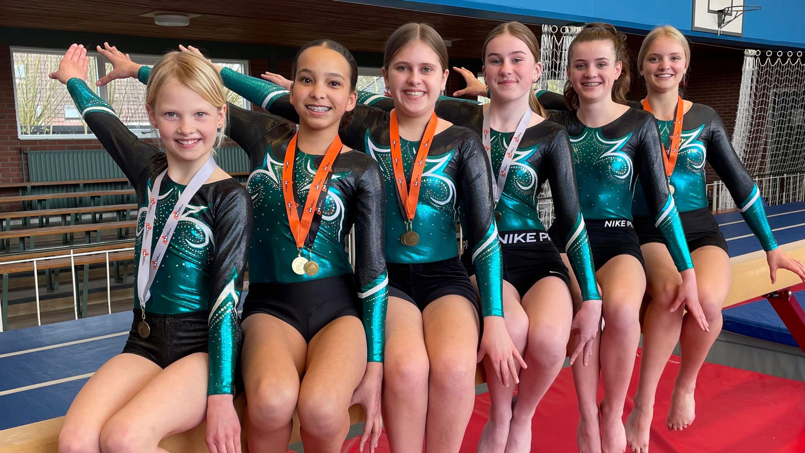 VIOS-turnsters terug op de wedstrijdvloer 3 april 20223 april 2022 Whatsapp Share Share WARFFUM – Door Covid hebben de turnsters van turnclub VIOS uit Warffum de afgelopen 2 jaar geen wedstrijden kunnen turnen en heel veel trainingsuren moeten missen. Marilynn Raat opende namens VIOS het wedstrijdseizoen. Zij reisde samen met assistent trainster Emma Reinders af naar Veenoord. Raat komt uit in de categorie Junior supplement D. Een hoog niveau, waar de nodige trainingsuren voor nodig zijn. Raat turnde op sprong 2 keurige sprongen. Half in-Half uit (11.050) en Handstandoverslag (11.100). De brug is toch een lastig onderdeel, hier is veel training voor nodig en helaas hebben we dat niet in de voorbereiding gehad. Ze turnde desondanks toch nog een redelijke oefening, waar tevreden op kan worden terug gekeken (9.450). Op de balk had Raat een doel. Ze ging een salto achterover turnen op de 10 cm smalle balk en dit deed ze. Ze voerde tijdens de wedstrijd een salto achterover uit tot stand op de balk! Helaas wel een val met de pirouette, maar verder een keurige oefening. (10.100). Op vloer is Raat goed in de acrobatiek, maar het turnen op muziek is een dingetje voor Raat. Ze turnde een oefening naar haar kunnen. (9.350). Raat eindigde op een keurige 8ste plek in een deelnemersveld van 23 turnsters. Linde Kuiper, Lieke van der Kooi, Sara Malek, Mila Kolstein en Naomi van der Veen turnde hun eerste wedstrijd in Uithuizen onder leiding van trainster Sandra Bosman. De wedstrijd werd georganiseerd door VIOS en Turning Winsum. Kuiper en Van der Kooi kwamen uit in de categorie middenbouw supplement 5. Dit seizoen turnen de turnsters voor het eerst in een team. Zij kwamen uit in een team samen met Yalenka Ahlers van Sportfit Delfzijl, Romy Bakker en Dione Gerdes van GAV-Unitas Usquert. De wedstrijd begon op sprong Kuiper sprong keurig een handstandoverslag (14.100) en half in (14.000). Van der Kooi deed dit ook keurig met een handstandoverslag (14.250) en half in (14.500). De brug is voor Kuiper spannend, omdat ophurken niet wil lukken. Besloten werd om het element weg te laten. Ze turnde verder een keurige oefening (11.300). Van der Kooi kreeg de training voor de wedstrijd een grote blaar op haar hand, met deze pijnlijke blaar turnde ze toch een redelijke oefening (11.200). Op de balk ging het bij beide turnsters helaas iets minder goed. Kuiper turnde netjes, maar viel met koprol en vergat een element wat haar 2 volle punten heeft gekost (8.350). Van der Kooi ging de verkeerde kant op, waardoor ze uit haar concentratie raakte en hierdoor lukte het niet om alles netjes uit de voeren, helaas ook nog een val met de koprol (8.150). Op de vloer maakte beide turnsters het weer goed. Kuiper turnde netjes en haar boogje lukte (13.233). Van der Kooi turnde ook een mooie oefening (12.900). Samen met hun team genoten wisten ze als team het zilver de pakken. Individueel eindige Kuiper als 5e en Van der Kooi als 6e in een deelnemersveld van 23. Malek, Kolstein en Van der Veen kwamen uit in de categorie supplement G. Zij kwamen uit in een team samen met Marielle Groenhof van CSV Onstwedde, Evelin Heemstra en Eléne Jensma van MGV Middelstum. De wedstrijd begon op sprong. Niet sterkste toestel van het drietal, maar de sprongen alle drie een keurige handstandoverslag. Malek (10.200), Kolstein (10.250), Van der Veen (10.500). Door naar de brug waar het voor Kolstein en Van der Veen toch altijd spannend is met ophurken. Malek turnde een hele mooie oefening (11.200). Kolstein turnde keurig en ophurken lukte (10.100). Helaas viel Van der Veen toch met ophurken, verder keurig geturnd (10.150). Op balk turnde de turnsters alle drie een mooie oefening. De elementen werden strak en sierlijk uitgevoerd. Malek raakte helaas niet bij de afsprong met haar handen de grond (10.150). Kolstein raakte alleen met haar opsprong de balk met haar voeten (10.800). Van der Veen turnde naar een mooie score (11.050). Het laatste toestel was de vloer, waar het drietal goed in is. Ze turnde alle drie een mooie oefening zonder grote fouten. Malek (11.050), Kolstein (11.150) en Van der Veen (11.850). Samen met hun teamgenoten wisten ze het goud te pakken. Individueel eindigde Malek in de categorie jeugd G op de eerste plek in een deelnemersveld van 14 turnsters. Kolstein eindigde individueel in de categorie junior G op de derde plek en Van der Veen op de eerste. Daarmee ging het drietal alle drie met 2 medailles naar huis. Trainster Bosman en Reinders kijken terug op mooie prestaties met weinig voorbereiding. De volgende groep VIOS turnsters turnen op 9 april in Bellingwolde. Sport