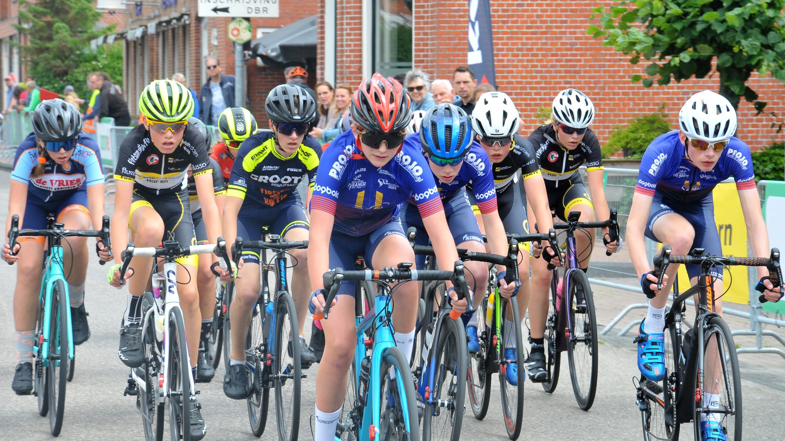 Jeudgtoernooi wielrennen sieraad van Kloosterburen 11 juli 2022 Whatsapp Share Share KLOOSTERBUREN – Met Anniek Mos en Joakim Zuidema heeft de zaterdag verreden 41e editie van de Ronde van Kloosterburen afgetekende winnaars. De opkomst van het publiek viel tegen en dat is een kwestie waar de KNWU zich onderhand toch eens serieus over buigen moet, die tanende belangstelling voor de plaatselijke wielerkoersen. Hoe het ook zijn moge, de grote verdienste van de organisatie in Kloosterburen is het jeugdtoernooi, de wielersport voor jeugdigen tot 15 jaar. De enige mogelijkheid om uit de breedtesport talenten te laten groeien, dat zijn de jeugdwedstrijden. Met de De Dikke Banden Race en de jeugdwedstrijden zaterdagmiddag is het voorlopig stil in het jeugdwielrennen in grote delen van Nederland, tot september. En dat baart pas echt zorgen. Het was overigens een gezellig middagje met jonge renners, vol ambitie en verwachtingen nog, hard aan het werk te zien. Voor de dameskoers voor amateurs, beloften, elite en junioren stonden 25 rensters aan de start, waaronder Minou Hegge, de lokale favoriet. Met nog vijftien van de in totaal 33 ronden te gaan, vormden zich een kopgroep van zeven rensters met daarin de sterke Anniek Mos en ook de rappe Yvet Schoonewille uit Klazienaveen en Myrthe Sandu uit Heerenveen. Deze kopgroep handhaafde zich tot het eind en met een lange sprint trok Anniek Mos de zege naar zich toe; Yvet Schoonewille werd tweede en Myrthe Sandu derde. Minou Hegge werd 18e in het peloton. Bij de amateurs en de sportklasse mannen waren 35 renners komen opdagen voor 42 ronden koers. Al vroeg in de wedstrijd ontstond een kopgroep met Joakim Zuidema uit Drachten, Erik Hagting uit Groningen en Nick Zuidema uit Roden. In de sprint van de kopgroep brak de ketting van Hagting met nog 200 meter te gaan. Joakim Zuidema won de sprint. Foto: Een van de jeugdgroepen in de koers Nieuws Sport