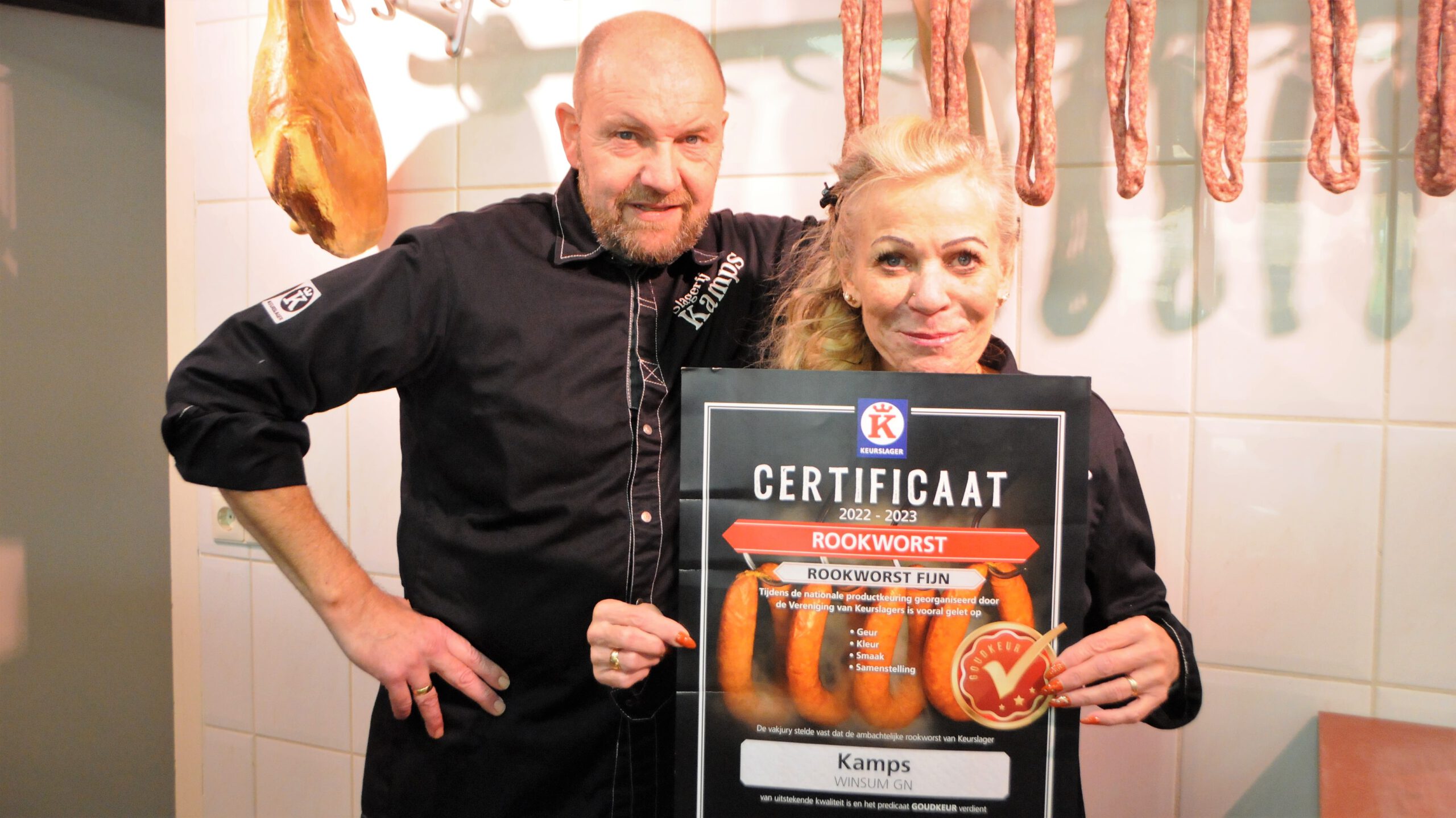 Rookworst van Keurslager Kamps pakt weer GOUD! 8 oktober 2022 Whatsapp Share Share Geen enkele rookworst is hetzelfde, maar als deze met liefde en vakmanschap is gemaakt, dan proef je dat. Tijdens de jaarlijkse rookworstkeuring in eind september werd er door een vakbekwame jury een graadmeter gegeven aan de rookworst. Vol trots kan Keurslager Henk Kamps uit Winsum zeggen dat zijn rookworst het predicaat GOUD heeft gekregen! Elk jaar weer steekt Henk Kamps veel tijd in het perfectioneren van de worst. Deze wordt dan tijdens de landelijke keuring getest door een vakjury. “Onze rookworst wordt gemaakt van vers uitgesneden varkensvlees uit eigen omgeving en van varkens die diervriendelijk zijn grootgebracht” licht de trotse Henk toe. Elk jaar gaat de Winsumer slager voor de perfecte smaak en verbetert hij zijn recept. Er gaat nog wel een proces aan vooraf om de perfecte rookworst te maken. “Onze rookworst wordt gemaakt met door ons vers uitgesneden varkensvlees ontdaan van pezen en zeentjes en met onze eigen samengestelde kruidenmix voor Rookworst. De Rookworst wordt in onze eigen Rokerij afgerookt met een zuiver mengsel van eiken en beukenhout zo zijn wij in staat om de perfecte rookworst te leveren, voor de Rookworst keuring” vertelt de gedreven ondernemer. Proeven! Om te vieren dat het rookworstseizoen weer is begonnen, krijgen klanten van 11 t/m 15 oktober de derde rookworst gratis! Het seizoen is daarmee, als het aan ons ligt, officieel geopend. Jaarlijkse rookworstkeuring De Vereniging van Keurslagers organiseert elk jaar de keuring, waarbij een onafhankelijke vakjury de rookworsten blind beoordeelt op samenstelling, bite, smaak, kleur en geur. Naast een uitgebreid juryrapport ontvangen alle winnaars een certificaat. BaaistemaartTip: Uw snert smaakt beestachtig goed als u er vlees van Kamps in doet ! (Zie ook de weekaanbiedingen) Nieuws