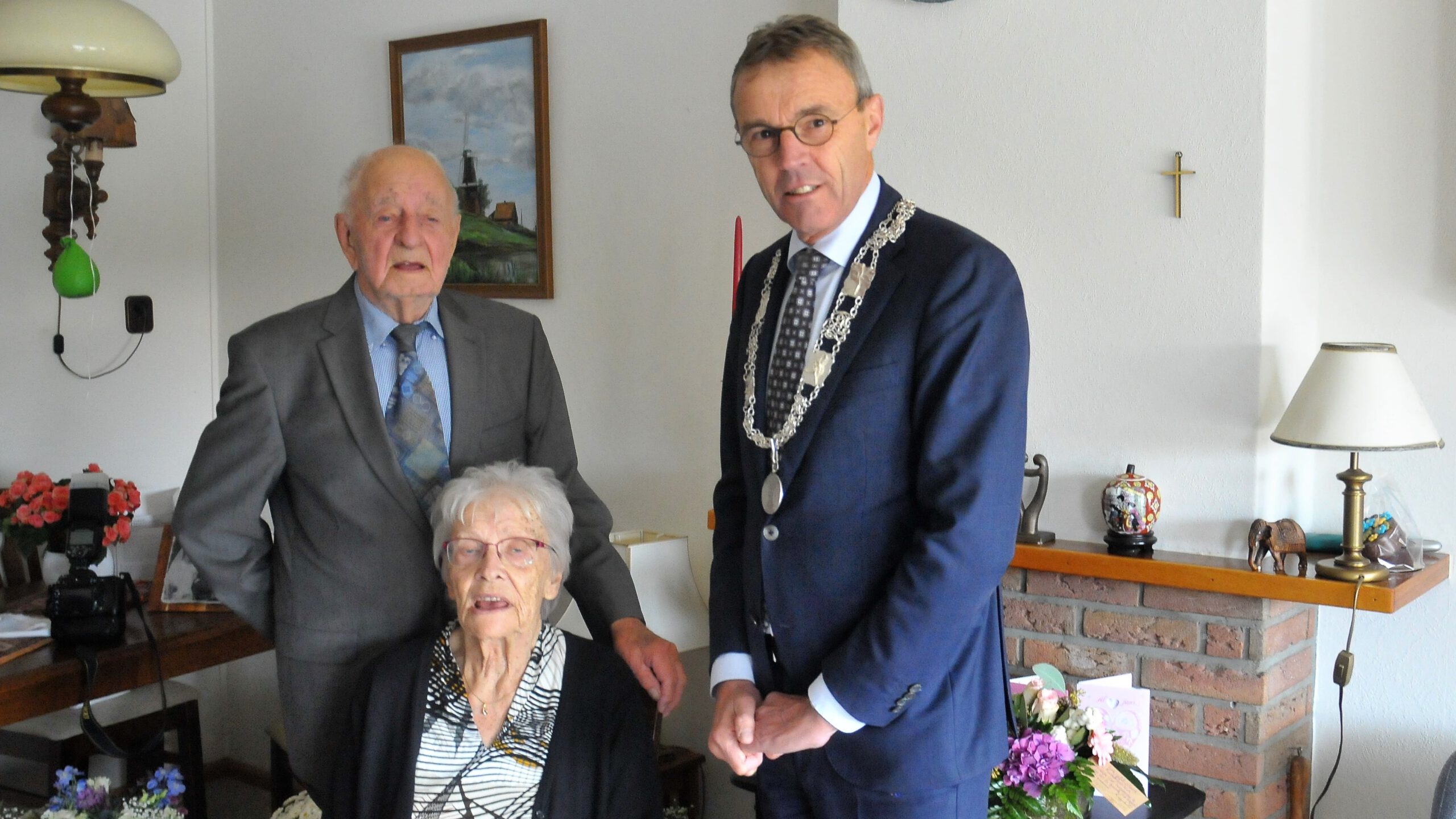 Platina voor Johan en Mien 17 oktober 2022 Whatsapp Share Share UITHUIZEN – Op maandag 17 oktober bracht burgemeester Henk Jan Bolding een bezoek aan Johan en Mien Bronts in Uithuizen. Het was precies 70 jaar geleden dat ze elkaar het jawoord hadden gegeven. Beiden zijn geboren en getogen in Uithuizen. Johan Bronts werd op 14 januari 1927 geboren. Mien Buit zag op 10 juli 1928 het levenslicht. Ze trouwden op 17 oktober 1952 op het gemeentehuis in hun woonplaats. Johan Bronts had een kwekerij en was werkzaam als taxichauffeur. Zijn vrouw Mien was coupeuse en verkoopster. Het echtpaar heeft altijd in Uithuizen gewoond. Sinds 1986 wonen ze op hun huidige adres aan het Kerkplein 16. Johan Bronts heeft als hobby puzzelen. Beiden lezen verder graag. Het echtpaar heeft vijf kinderen; vier dochters en een zoon. Hun leeftijden variëren van 60 tot 66 jaar. De oudste dochter overleed in 2011 op 57-jarige leeftijd. De heer en mevrouw Bronts hebben negen kleinkinderen en elf achterkleinkinderen. Nieuws