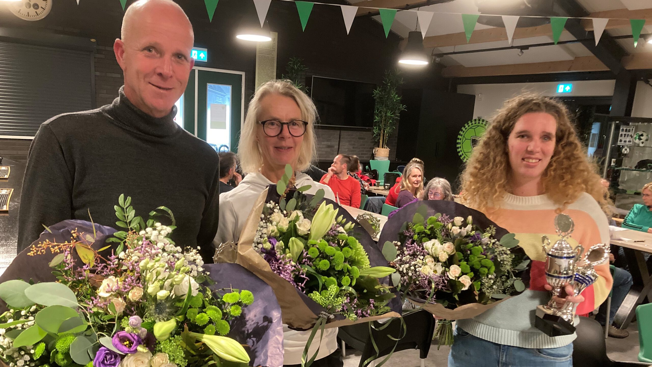 Artemis huldigt clubkampioenen 2019-2022 28 oktober 2022 Whatsapp Share Share WINSUM – Tijdens de woensdagavond gehouden algemene ledenvergadering van de Winsumer hardloopgroep Artemis in de kantine van de vv Winsum is een drietal leden gehuldigd. In verband met corona werd de periode van de klassementen verlengd tot drie verenigingsjaren. Op basis van de vijf beste uitslagen volgens een formule waarin waren verwerkt het geslacht, de leeftijd, de gelopen afstand en de genoteerde tijd werden de clubkampioenen en de runner up bekend gemaakt. Clubkampioen bij de vrouwen werd Simone Binnema uit Eenrum. Zij loste Gonny Houtman uit Winsum af, die met gering verschil als tweede eindigde. Derde werd dorpsgenoot Aleida Groothoff. Bij de mannen prolongeerde Johan Vonck uit Garnwerd zijn titel. Zijn teller staat inmiddels op zes. Op ruime afstand volgden Garco van den Berg uit Oldenzijl en Wim Ammeraal uit Leens. Runner up 2019-2022 is Valerie Schaaphok uit Winsum geworden. De Winsumse had in deze periode verreweg de meeste vorderingen gemaakt. Janneke Cazemier uit Warffum en Harry Hammenga uit Winsum completeerden de eerste drie. De winnaars werden beloond met een bos bloemen, een blijvende herinnering en een wisselbokaal. Foto: Johan Vonck, Simone Binnema en Valerie Schaaphok Sport