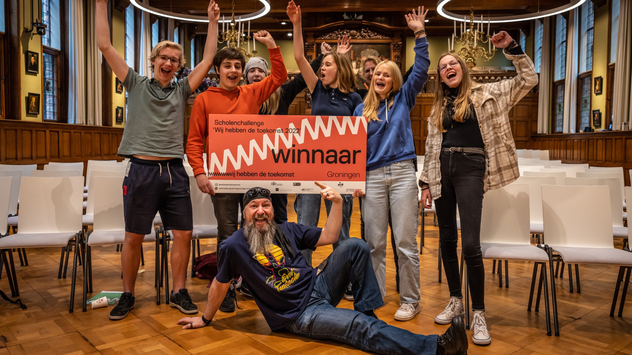 Game over klimaatverandering wint scholenchallenge 11 november 2022 Whatsapp Share Share GRONINGEN – Een game die mensen bewust maakt van klimaatverandering. Daarover gaat het winnende idee van leerlingen van het Praedinius Gymnasium in Groningen. Zij deden sinds september mee aan de scholenchallenge ‘Wij hebben de toekomst’ van Nationaal Programma Groningen en Stichting Technasium. Vrijdag 11 november 2022 was de finale en presenteerden zij samen met 45 andere leerlingen en studenten hun idee in het provinciehuis in Groningen. Voor het uitvoeren van de game ‘Naturedo’ heeft Nationaal Programma Groningen 10.000 euro beschikbaar gesteld. Siem Jansen, directeur Nationaal Programma Groningen: “De leerlingen keken naar veel meer dan alleen techniek. Ze hebben oplossingen bedacht die van betekenis zijn voor de omgeving en zelfs voor de rest van de wereld. Wij gaan het winnende team helpen om de game verder te brengen.” Winnaars Er deden leerlingen en studenten mee van: het Alfa-college in Groningen, RSG de Borgen in Leek, het Praedinius Gymnasium in Groningen en het Ubbo Emmius in Stadskanaal. Alle onderstaande prijswinnaars gingen naar huis met een VIP-arrangement van Wildlands Adventure Zoo Emmen. Winnaar scholenchallenge ‘Wij hebben de toekomst 2022’: het idee Naturedo van het Praedinius Gymnasium. Je gaat daarin terug en vooruit in de tijd, de keuzes die je maakt hebben effect op het klimaat. De jury zegt hierover: “Het speelt in op bewustwording, er is goed nadacht over het verhaal, het is goed uitvoerbaar én geschikt voor meerdere doelgroepen.” “Het was zo spannend, mijn hart kon het niet meer aan”, zegt één van de teamleden na afloop van de prijsuitreiking. Meest vernieuwende idee: Licht in het donker van het Alfa-college. Een batterij op luchtdruk die werkt op restenergie van zonnepanelen. Ook als de zon niet schijnt kan je gebruikmaken van de energie die je opwekt. “Technisch gezien heel innovatief, knap bedacht, het werkende prototype sprak tot de verbeelding”, is de motivatie van de jury. Zowel Gasunie als SAMEEN hebben hun netwerk aangeboden om dit idee door te ontwikkelen. Beste pitch: Het pand van het Ubbo Emmius. Een pand waar je kan koken, douchen, eten en samen zijn met buurtgenoten. Ook kan je er je oude apparaten inleveren en sparen voor nieuwe. Oftewel: “Een buurthuis met duurzame extra’s. De boodschap achter dit idee sluit goed aan bij de actualiteit van energiearmoede”, aldus de jury. Scholenchallenge In totaal deden er aan de scholenchallenge 185 leerlingen en studenten mee van dertien technasium-, vmbo- en mbo-scholen in Groningen, Drenthe en Friesland. In september begonnen ze gezamenlijk met een zogeheten hackathon, waarbij ze dertig uur aaneengesloten werkten aan een oplossing voor een energievraagstuk. De acht weken daarna gingen ze met hun klas aan de slag om dit verder uit te werken. Vrijdag 11 november was de finale in de drie provinciehuizen en presenteerden ze hun idee in de provincie waar hun school staat. Foto: Het winnende team van het Praedinius Gymnasium uit Groningen Nieuws