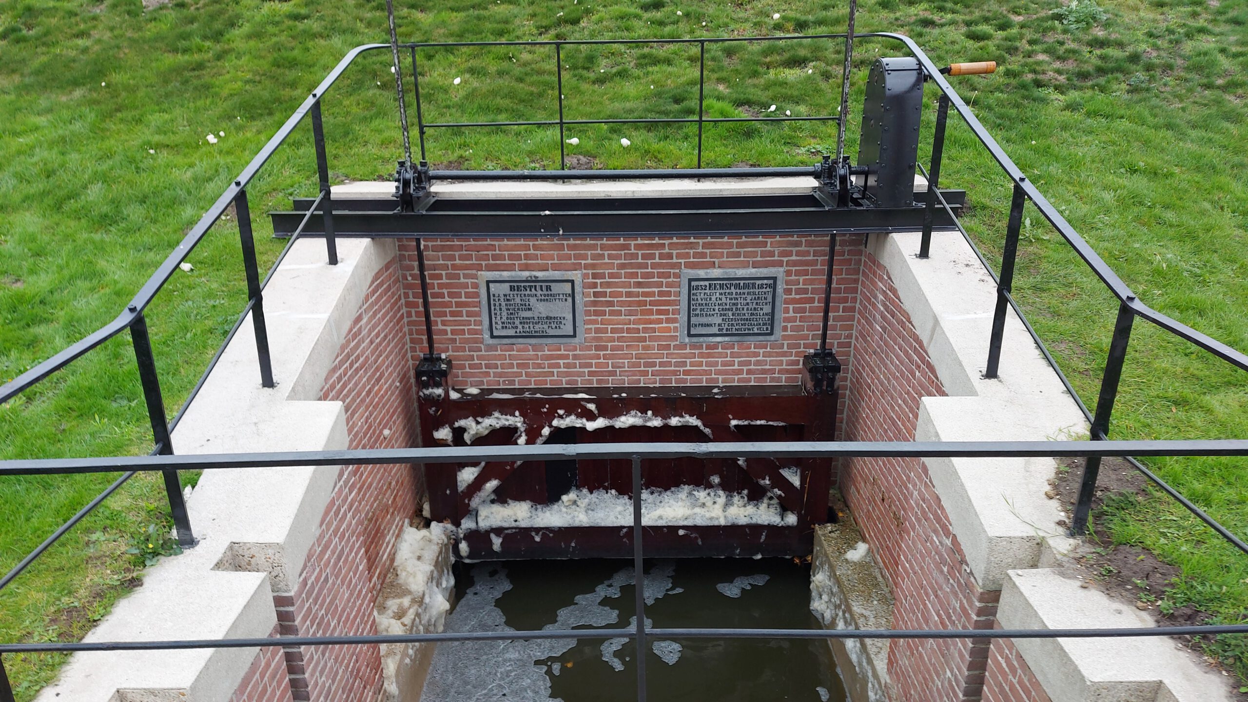 Restauratie oude sluis bij molen De Goliath afgerond 11 november 2022 Whatsapp Share Share EEMSHAVEN – Met het opdraaien van de schuifdeur in de oude uitwateringssluis bij poldermolen De Goliath nabij de Eemshaven is vandaag de restauratie van deze waterinlaat officieel afgerond. Deze slothandeling is verricht door portefeuillehouder Jeroen Niezen van Waterschap Noorderzijlvest en gedeputeerde Johan Hamster namens Provincie Groningen. Het herstel van dit cultuurhistorisch erfgoed van het waterschap is onderdeel van de uitvoering van het landschapsprogramma ter compensatie van de aanleg van de nieuwe hoogspanningslijn 380 kilovolt. TenneT neemt de verbinding volgend jaar zomer in gebruik. Cultuurhistorisch erfgoed De oude sluis bij molen De Goliath is in 1878 na aanleg van de Emmapolder gebouwd. De sluis zelf is geen actief onderdeel meer van het watersysteem en door de jaren heen in verval geraakt. Vanuit het belang dat het waterschap hecht aan behoud van het cultuurhistorisch erfgoed, is besloten om het complex in ere te herstellen. Naast restauratie van de sluis zelf zijn de oorspronkelijke houten deuren in de sluis teruggebracht. Deze zijn in de jaren ’60 destijds vervangen door een stalen hefdeur. Ook zijn er twee schotbalkhuisjes geplaatst. Landschapsprogramma De restauratie van deze uitwateringssluis is onderdeel van de uitvoering van het landschapsprogramma. Netwerkbeheerder TenneT legt een nieuwe bovengrondse hoogspanningslijn van 380 kilovolt aan tussen de Eemshaven en Vierverlaten bij Hoogkerk. De bestaande verbinding van 220 kilovolt voldoet niet meer vanwege de groei van de Eemshaven als energieknooppunt. Om de gevolgen van deze verbinding te compenseren investeren TenneT en de provincie in landschaps- en natuurmaatregelen. Financiering Het waterschap voert het herstel uit in samenwerking met de Stichting Beheer en Behoud van het Poldermolencomplex De Goliath, Oosterhof-Holman als uitvoerende partij en de landschapscompensatieregeling 380KV (TenneT en Provincie Groningen). Naast de investering van het waterschap hebben Tennet en Provincie Groningen vanuit deze regeling ook financieel bijgedragen aan dit herstel. Nieuws