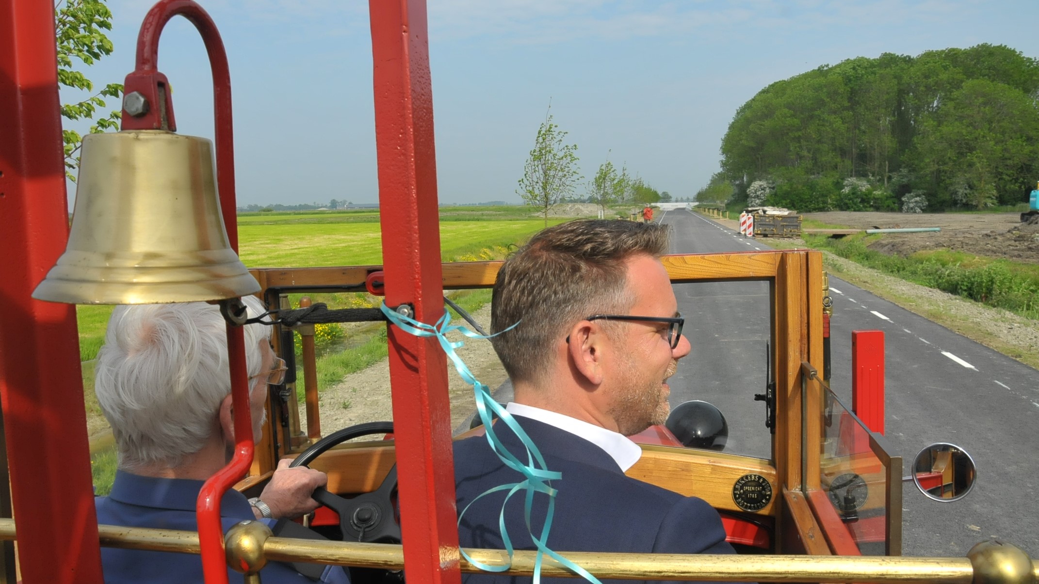 Feestelijke opening Novaweg in Winsum 22 mei 2023 Whatsapp Share Share WINSUM – Gerrit Poort was de eerste chauffeur die over de Novaweg reed, en daarmee op maandag na de middag de nieuwe rondweg van Winsum opende. Met zijn bekende antieke brandweerwagen, een Fordson uit 1932, en als passagiers de wethouders Stefan van Keijzerswaard en Eltjo Dijkhuis, regiodirecteur van ProRail Danou Veenhof en Johan Koopmans, directeur van provincie Groningen. V.l.n.r. Stefan van Keijzerswaard, Johan Koopmans, Eltjo Dijkhuis en Danou Veenhof Hiermee is een project uit 2016 afgerond. In dat jaar sloten het provinciebestuur en de gemeente Winsum het rompakkoord voor de aanleg van deze weg. Het doel ervan was het ontlasten van de Onderdendamsterweg van gemotoriseerd doorgaand verkeer. Hierdoor moet het centrum van Obergum veiliger worden voor voetgangers, fietsers en inwoners. De weg is onderwerp geweest van heftige discussies. Bewoners van de aangrenzende Bloemenbuurt vochten de aanleg aan bij de Raad van State, bewoners van de Onderdendamster weg waren juist vóór de aanleg van de Novaweg. Het project heeft zo’n 8,2 miljoen gekost voor de weg van ongeveer 750 meter en de spoortunnel; het leeuwendeel van kosten ging op aan de spoortunnel. De gemeente Het Hogeland draagt hier zo’n tien procent van bij, de rest is ten laste van de provincie. De aanleg heeft geen noemenswaardige problemen opgeleverd. Het overleg met de buurt vindt plaats met een klankbordgroep. Wethouder Van Keizerswaard, hij kreeg in het nieuwe college van b. en w. de weg in portefeuille, eerder had Dijkhuis dat, had voor de leden van de klankbordgroep een presentje, Novaweg bonbons. Tik Tok Tammo zong liederen, gesteund door de geluidstechniek van het Winsumse bedrijf SportsCom. Nieuws