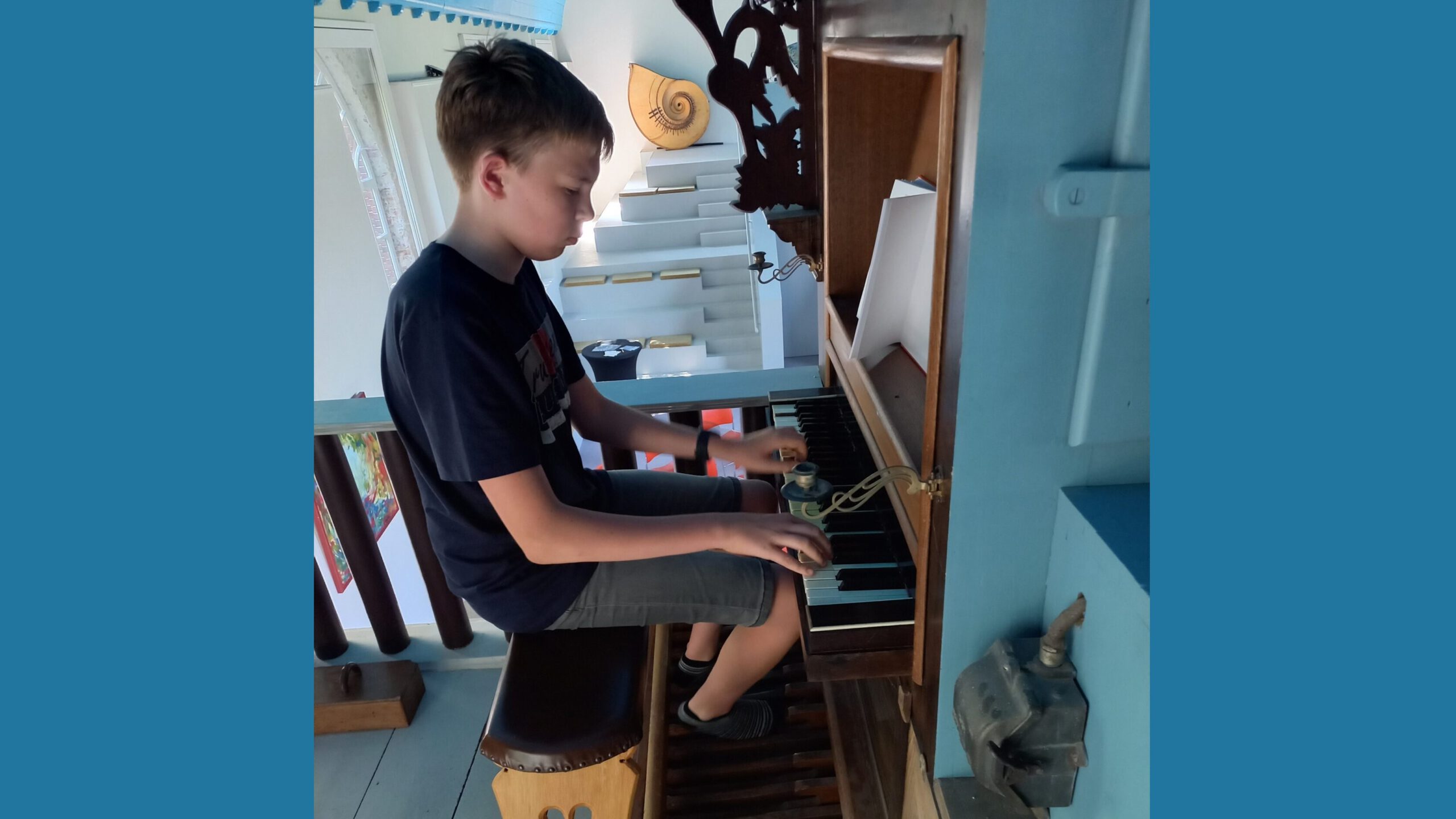Orgelspelen in de Nicolaaskerk van Kloosterburen 8 augustus 2023 Whatsapp Share Share KLOOSTERBUREN – Sinds kort kunnen (amateur)organisten op afspraak het fraaie Van Oeckelenorgel in de Nicolaaskerk van Kloosterburen bespelen. Dit kan elke tweede zaterdag van de maand, dus ook weer op zaterdag 12 augustus a.s. Als tegemoetkoming wordt een vrije gift voor het orgelfonds gevraagd. De 13-jarige Christian Doornbos (foto) en zijn vader uit Ten Boer meldden zich onlangs als eersten aan. Allebei gingen ze vol op het orgel! Ook een keer op dit mooie orgel spelen? Neem dan contact op met Hans ter Heijden, 06 51 05 65 65 of per e-mail: ter.heijden.hans@gmail.com Nieuws