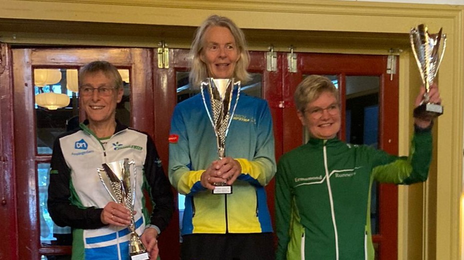 Oudjes Artemis doen het nog goed 22 oktober 202322 oktober 2023 Whatsapp Share Share WINSUM – Leden van de Winsumer Loopgroep Artemis waren afgelopen zaterdag met succes actief in Lengerich (D), Appingdam en Zwolle. Met een eerste plaats voor Gonny Houtman bij de Vrouwen 70 en twee 2e plaatsen voor Hilda Broekhuizen (Vrouwen 60) en Koos Durenkamp (Mannen 75) in de Waldlauf over 12.2 kilometer zijn er zatermiddag uitstekende prestaties geleverd. In het natuurrijke Teutoburgerwoud werd met start en finish In Lengerich voor de 26e keer de Teutolauf georganiseerd. De totaal 1309 deelnemers hadden de keuze uit vier loop- en wandelafstanden. De routes staan bekend om hun mooie natuur, vele honderden hoogtemeters, prachtige vergezichten, boomstronken, steile hellingen en diepe dalen. De vele regenbuien zorgden voor grote plassen op de route en spekgladde gedeelten in het woud. Artemis telde op de 12.2 kilometer drie deelnemers die alle drie in de prijzen vielen. Gonny Houtman werd met een tijd van 1.25.42 uur eerste bij de vrouwen 70. Hilda Broekhuizen klokte bij de vrouwen 60 een tijd van 1.07.49, goed voor een tweede plaats en Koos Durenkamp tenslotte eindigde verdienstelijk eveneens als tweede bij de mannen 75 in 1.19.07 uur. Stad-Groninger Marnix van den Brink startte op de langste afstand de loodzware 29 kilometer. Hij finishte in deze naar zijn zeggen mud race na 3.13.04 uur als 41e bij de mannen 50. Und am Ende gab es wie immer für die Gewinner Diplomen und Cyclamen. Und Kaffee, Bier und Kuchen für alle Teilnehmer. Gonny Houtman, Koos Durenkamp en Hilda Broekhuizen Met een tweetal prijzen op de 10 kilometer voor Simone Binnema uit Eenrum en Ricardo Damminga uit Baflo en een dik persoonlijk record voor Annica Doornbos uit Winsum kwam Artemis zaterdagmiddag bij de Ekensteinloop nabij Appingedam uitstekend voor de dag. Deze loop was de zesde en laatste wedstrijd van het na afloop hiervan ook gestopte Huis & Hypotheek Ommelander Loopcircuit 2023. Het aantal deelnemers bedroeg totaal 154 verdeeld over 72 op de 5 kilometer en 82 op de 10 kilometer. Op het prachtige in herfstkleuren getooide landgoed Ekenstein was een ronde van 5 kilometer uitgezet. Het geaccidenteerde parcours met gedeeltelijk onverharde en glibberige paden met het nodige bochtenwerk vroeg de aandacht van de deelnemers. Van de vier Artemis-deelnemers op de 10 kilometer was er een eerste prijs bij de vrouwen 50 voor Simone Binnema (zie uitgelichte foto) in 48.05 uur. Ricardo Damminga werd bij de mannen senioren verdienstelijk derde in 39.27 minuten. Annica Doornbos, gehaasd door Jaap Smith uit Baflo, overtrof zichzelf. Haar tijd van 47.25 betekende niet alleen een vierde plaats bij de vrouwen 40 maar bovendien een persoonlijk record van maar liefst 5.01 minuten. De Bafloër noteerde als vijfde bij de mannen 50 een tijd van 47.30 minuten. Op de 5 kilometer eindigde Wim Ammeraal uit Leens in 23.39 minuten als tiende in een veld van 72 deelnemers. Jeannet Bakema uit Loppersum klasseerde zich als 48e in 30.42 minuten. Na afloop vond de uitreiking van de dagprijzen en de prijzen verbonden aan de eindklassementen per categorie plaats in het `Schathoes`. Het eindklassement bij de vrouwen 50, op basis van het aantal punten behaald in zo mogelijk alle zes wedstrijden, werd een duidelijke prooi voor de Eenrumse . Met drie overwinningen, een tweede en drie derde plaatsen behaalde ze totaal 187 punten. Voor Ricardo Damminga waren de druiven erg zuur. Hij werd bij de mannen senioren met 97 punten net als vorig jaar vierde. Het verschil met een podiumplaats bedroeg dit jaar slechts een punt! Tevens werd er afscheid genomen van het stichtingsbestuur van het circuit en alle andere vrijwilligers en sponsors. Het circuit is de afgelopen twintig jaren een succes geweest. Martin Stevens uit Zwolle heeft zaterdag meegedaan aan een 10 kilometer wedstrijd in zijn eigen woonwijk Stadshagen. Er moesten twee ronden van 5 kilometer onder andere over de Hasselterdijk worden afgelegd. In een veld van 118 deelnemers eindigde hij bij de mannen 45 op een keurige 23e plaats in 43.18 minuten. Nieuws Sport