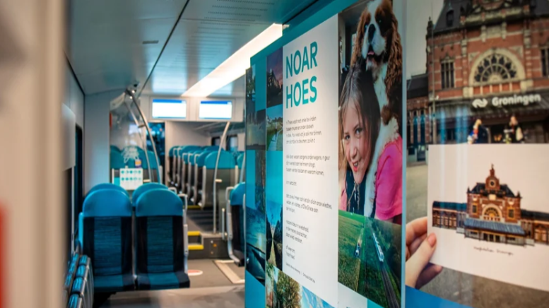 GRONINGEN – Arriva heeft donderdag de nieuwe WINK-treinen Thús en Noar Hoes onthuld. Deze treinen zijn ontworpen met hulp van inwoners van Friesland en Groningen. Inwoners uit beide provincies hebben foto’s ingezonden die te maken hadden met het gevoel van thuis of naar huis gaan. De foto’s zijn beoordeeld door een jury, waaronder medewerkers van Arriva en vertegenwoordigers van Merk Fryslân en Marketing Groningen.