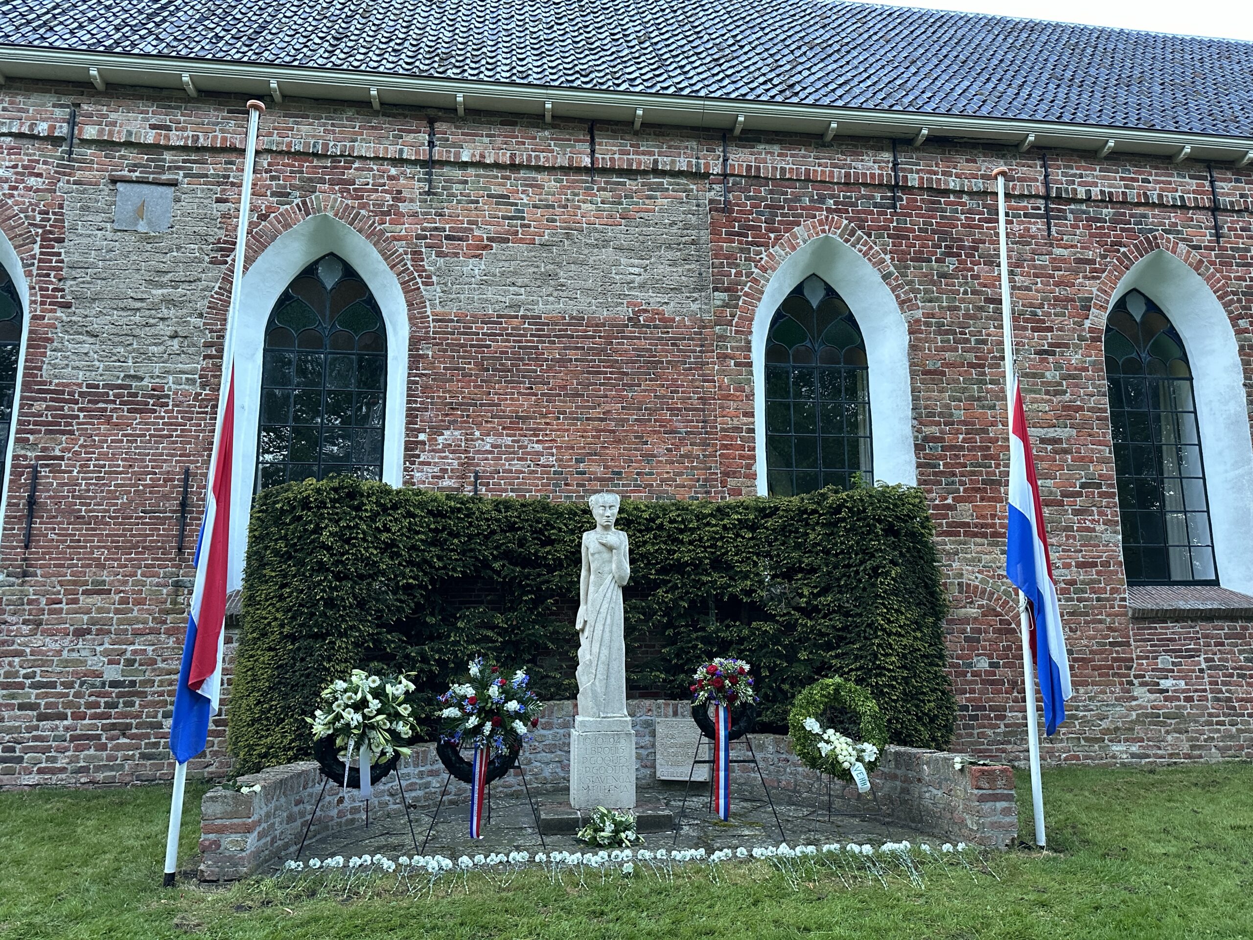Druk bezochte dodenherdenking in Baflo 5 mei 2024 Whatsapp Share Share Onder redelijk goede weersomstandigheden vond zaterdagavond in Baflo de traditionele Dodenherdenking plaats. Om 19.50 uur vertrok de stoet met genodigden, voorafgegaan door de christelijke muziekvereniging ‘Excelsior’, vanaf dorpshuis Agricola naar het herdenkingsmonument aan de zuidzijde van de Laurentiuskerk. Daar legden raadslid Gerard ten Brink van de gemeente Het Hogeland, Nico Werkman (voorzitter Algemene Oranjevereniging Baflo), Kor Kruizenga (bestuurslid stichting Historische Kring Baflo) en Ulfert Molenhuis uit Groningen (namens de schuilplaatsverleners) om twee minuten voor acht uur kransen. Naar schatting waren er bij de plechtigheid 250 personen aanwezig, waaronder ook veel jongeren en kinderen. Na twee minuten stilte om klokslag acht uur speelde ‘Excelsior’ twee coupletten van het Wilhelmus, waarbij de meeste aanwezigen meezongen. Aansluitend hield Ten Brink namens de gemeente Het Hogeland een herdenkingstoespraak. Verder lazen enkele leerlingen van SWS Noorderlicht gedichten voor en legden kinderen uit de groepen 7 en 8 van de plaatselijke basisschool bloemen bij het monument. Ook hield Ulfert Molenhuis een korte toespraak over het oorlogsverleden in Baflo. De herdenkingsplechtigheid, die ruim een half uur duurde, werd muzikaal omlijst door leden van het Vocaal Ensemble Het Hoogeland uit Kantens. Aan het slot van de ingetogen bijeenkomst legden bestuursleden van de Algemene Oranjevereniging Baflo en de genodigden bloemen bij het monument. Nadien bestond voor een ieder de mogelijkheid zelf meegebrachte bloemen aan de voet van het monument neer te leggen. Nieuws