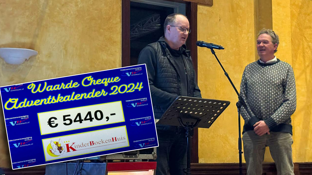 Kinderboekenhuis Winsum ontvangt cheque van € 5.440,00 18 januari 202518 januari 2025 Whatsapp Share Share Kinderboekenhuis Winsum heeft vrijdagavond een cheque van € 5.440,00 ontvangen. Dit bedrag is opgehaald met de verkoop van de adventskalender.De start van de verkoop begon in oktober. Voor € 5,00 konden mensen bij 15 ondernemers in Winsum de kalender kopen. Elk jaar wordt een goed doel uitgekozen waar de opbrengst van de verkoop naar toe gaat. In de afgelopen jaren waren dat onder andere Humanitas, de Voedselbank en Samenloop voor Hoop.Deze keer werd dus gekozen voor het KinderBoekenHuis in Winsum. Tijdens de nieuwjaarsreceptie van de ondernemersvereniging in Winsum werd de cheque overhandigd door Joop Veldhuis van de ondernemersvereniging aan de voorzitter van het kinderboekenhuis Jan Dirk Gardenier. Voorzitter van het kinderboekenhuis Jan Dirk Gardenier spreekt zijn dankwoord uit. Het KinderBoekenHuis in Winsum heeft één van de grootste collecties Nederlandstalige kinder- en jeugdboeken. De collectie bestaat uit 30.000 oude kinderboeken uit de periode 1770 tot nu. Het KinderBoekenHuis is een museum, een bibliotheek en een tweedehandskinderboekenwinkel. Lees meer: https://kinderboekenhuis.eu Nieuws
