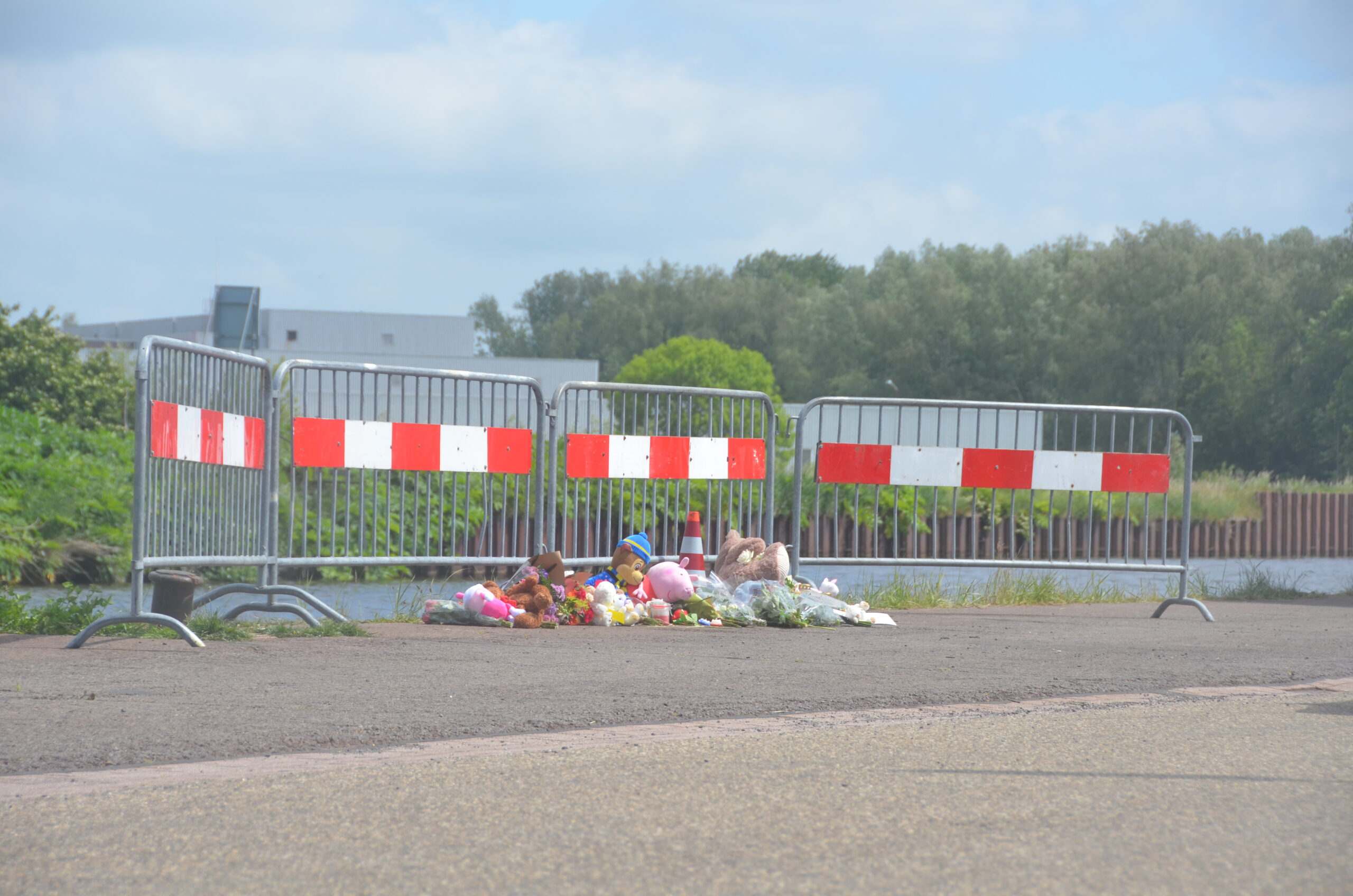(Foto: vlakbij de plek waar de auto werd gevonden zijn al bloemen neergelegd. Foto Jeroen Kunst/Omroep Eemsdelta)