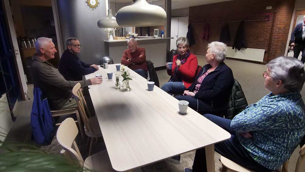 Voordat er wordt ingepakt, gaan de inpakkers eerst aan de koffie en thee in kerkgebouw De Poort in Winsum / © Omroep Het Hogeland