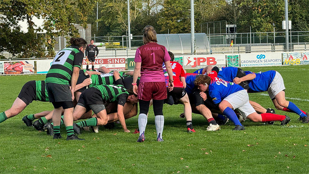 Rugby in Het Hogeland: ‘De scheidsrechter is ècht heilig, anders dan bij voetbal’ 3 december 20253 december 2025 Whatsapp Share Share Het ziet er gewelddadig uit: twee teams die op elkaar inbeuken en een bal over een paal heen gooien. Maar rugby is dat zeker niet, zegt Mees Breuker, secretaris en trainer van rugbyclub The Highlanders in Wehe-den Hoorn. “Het lijkt misschien chaos maar het is een hele mooie faire sport.” Trainer Breuker speelt al sinds zijn achtste jaar rugby. Eerst in Stad en nu dus in Wehe-den Hoorn. De rugbyclub The Highlanders bestaat pas sinds vorig jaar en heeft junioren- en seniorenteams. Breuker was te gast in de talkshow Wad ‘n Land! van streekomroep Het Hogeland-Eemsdelta om te vertellen wat voor hem rugby zo speciaal maakt. “Het is geen gewelddadigheid. Het is heel gecontroleerde techniek”, aldus Breuker. Voor hem is het een mooie sport waar respect, kameraadschap en discipline hoog in het vaandel staan. Presentator Luna Hamelink geeft eerlijk toe dat ze niet precies weet wat rugby is. Als zij aan rugby denkt dan ziet ze een Amerikaanse tiener-televisieserie voor zich waarbij twee teams tegenover elkaar staan en een bal over een eivormig doelpaal heen moeten gooien. Dat is American Football, zegt Breuker. Daar lopen ze in grote beschermingspakken rond maar bij rugby is de enige bescherming een mondbitje, vertelt Breuker. (tekst gaat verder onder de foto) Luna Hamelink in gesprek met rugbyspeler Mees Breuker Scheidsrechter Maar volgens hem zijn er hele strenge regels bij rugby, zoals bij een tackle. “Je mag niet boven de schouders tackelen. Het gaat allemaal heel gecontroleerd. Het lijkt misschien chaos maar het is een hele mooie faire sport.” De rol van de scheidsrechter is heel belangrijk. “Je bent heel eerlijk tegen de scheidsrechter. De scheidsrechter is ècht heilig, heel anders dan bij voetbal”, lacht Breuker. Daarom brengt de rugbyclub de sport naar Het Hogeland om voor de jeugd iets anders te brengen dan voetbal. “Zo proberen we de diversiteit in sport in onze gemeente wat te verbreden”, aldus trainer Breuker. Luister hier naar het interview dat Luna Hamelink had met Mees Breuker in de talkshow Wad ’n Land! Nieuws