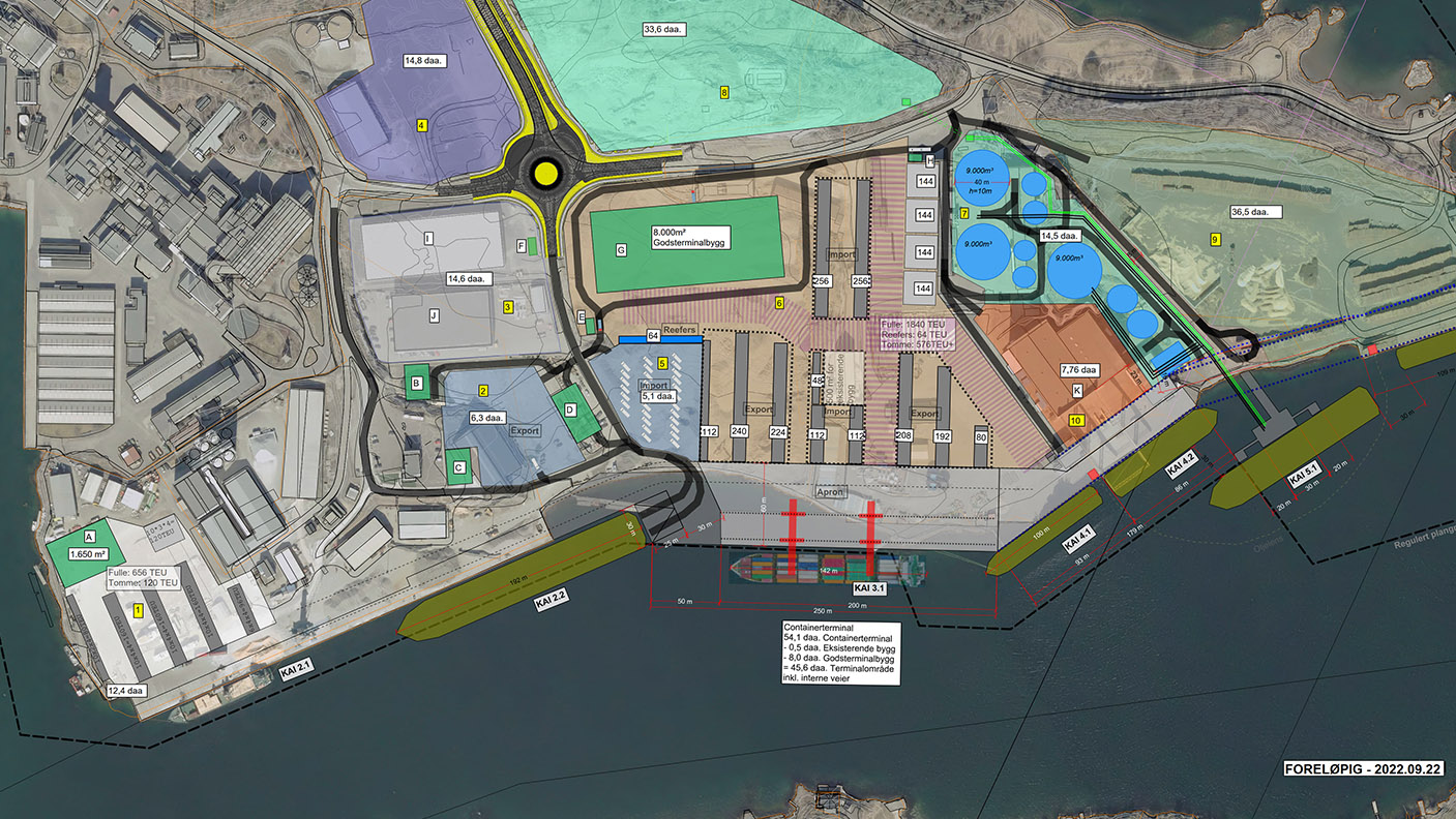 Het masterplan van de ‘Port of Arendal’ in Eydehavn, een havenplaats in de gemeente Arendal © Arendal Havn