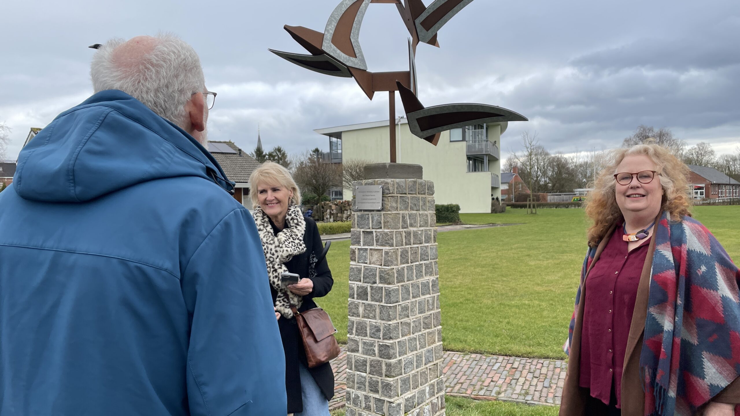 ‘Vergiskunstenaar’ Margriet Barends krijgt in Leens alsnog de eer die haar toekomt 28 februari 2026 Whatsapp Share Share Het was allemaal tot in de puntjes geregeld: in maart vorig jaar werd het beeld ‘Verbinding’ aan de Van Iperensingel in Leens officieel onthuld. Dorpsbelangen Leens, initiatiefneemster Jantje Koning en de gemeente waren blij, maar de kunstenaar op dat moment ietsje minder. Door een misverstand werd tijdens de onthulling een verkeerde naam van de beeldhouwster aan het beeld gekoppeld. Vandaag werd dat goedgemaakt. Kunstenaar Margriet Barends onthulde zaterdagmiddag samen met Dorpsbelangen Leens een plaquette die op de sokkel onder het beeld is geplaatst. ‘Dit kunstwerk ‘Verbinding’ is gemaakt door Margriet Barends in opdracht van gemeente Het Hogeland en Dorpsbelangen Leens’, staat op de bordje. Daarover kan dus geen misverstand meer bestaan. Het nieuwe beeld was een vurige wens van een aantal inwoners van Leens. Op de plek waar nu de ‘Verbinding’ staat, stond tientallen jaren een ander beeld. Maar daar stond alleen nog de sokkel van overeind, het brons van het beeld zelf was gestolen. Behalve het nieuwe beeld is een nieuw looppad aangelegd. Op de plek van een oude boomstam, direct naast de ‘Verbinding’, is een nieuwe boom geplant. ‘Kijk, dat ziet er een stuk beter uit’, zegt een van de omwonenden tijdens de onthulling. Margriet Barends wil niet teveel woorden meer vuil maken aan de naamsverwarring. “Ik vond het vooral vervelend voor de wethouder die een verkeerde naam door had gekregen. Mooi dat het op deze manier opgelost kan worden.” Na de onthulling bezochten zo’n tien belangstellenden het atelier van Barends in Ulrum. De originele onthulling van de “Verbinding’ in Leens was vorig jaar op internationale vrouwendag, op 8 maart. Dat was niet toevallig, zegt Margriet Barends in haar atelier. “Ik maak mij zorgen over de toenemende machocultuur in de wereld en het geweld tegen vrouwen.” Op één van de muren in het atelier wordt de actualiteit in Iran pijnlijk zichtbaar. Barends heeft een beeld gemaakt ter nagedachtenis van Mahsa Amini, die in Iran werd gedood omdat haar haar zichtbaar was. Barends: “Dit is het omgekeerde van verbinding. Ik vind het belangrijk om de belaging van vrouwen terug te laten komen in de beelden die ik maak.” Het atelier van Margriet Barends en haar man Harm van der Meulen (schilder) doet mee aan de Atelierroute Lauwersland die op 14, 15, 21 en 22 maart gehouden wordt. De route is hier te zien. Nieuws