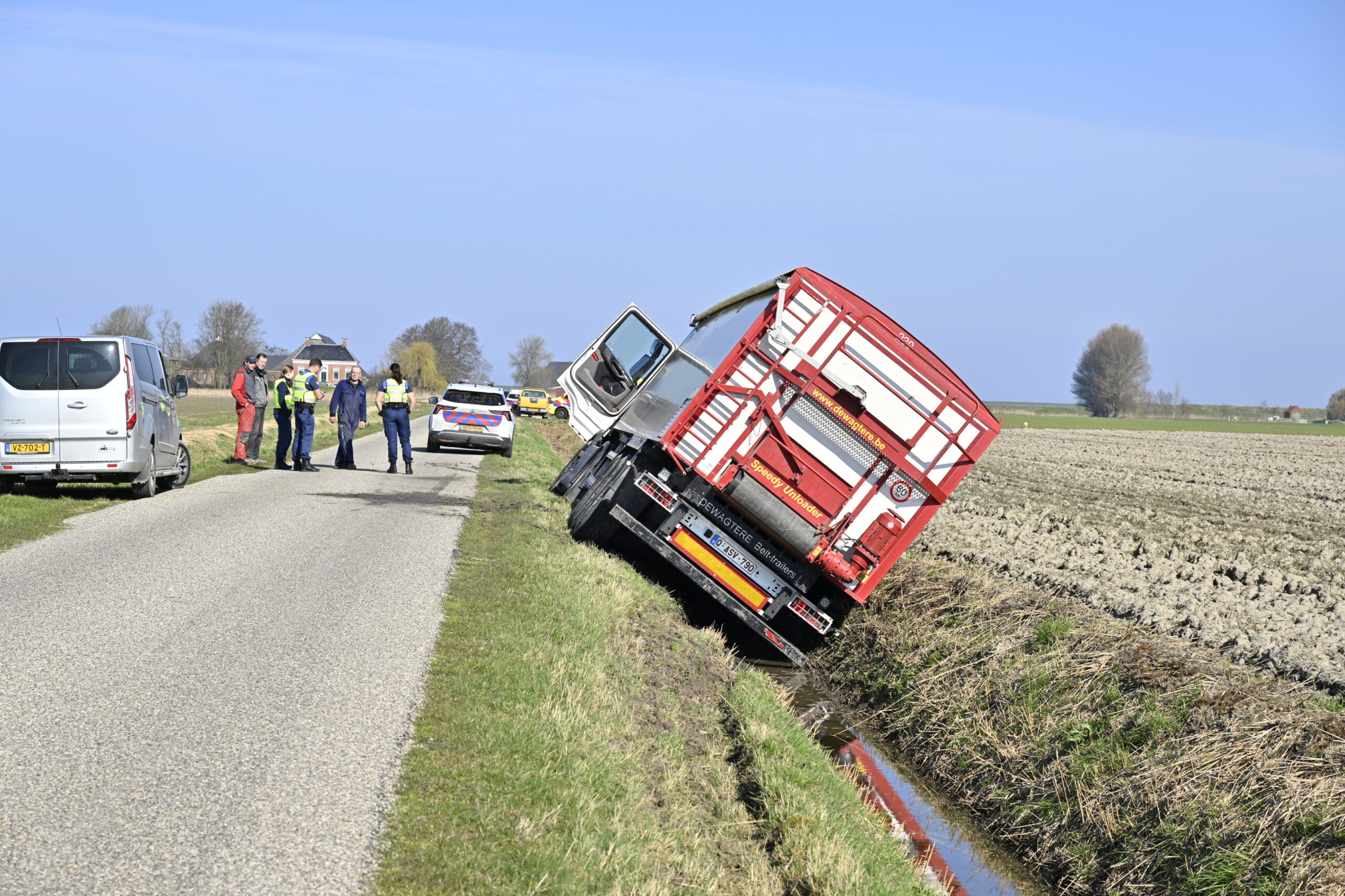 Vrachtwagen strandt in sloot boven Uithuizen 19 maart 2026 Whatsapp Share Share Een vrachtwagenchauffeur is donderdagochtend gewond geraakt na een eenzijdig ongeval op de Lauwersweg, boven Uithuizen. De chauffeur moest volgens eigen zeggen uitwijken voor een fietser en kwam daarbij te veel in de berm terecht. De vrachtwagen kwam in een sloot tot stilstand. De chauffeur is na controle door ambulancepersoneel overgebracht naar het ziekenhuis voor nader onderzoek. Een berger gaat de vrachtwagen in de loop van de dag bergen. Nieuws