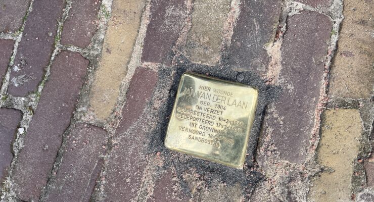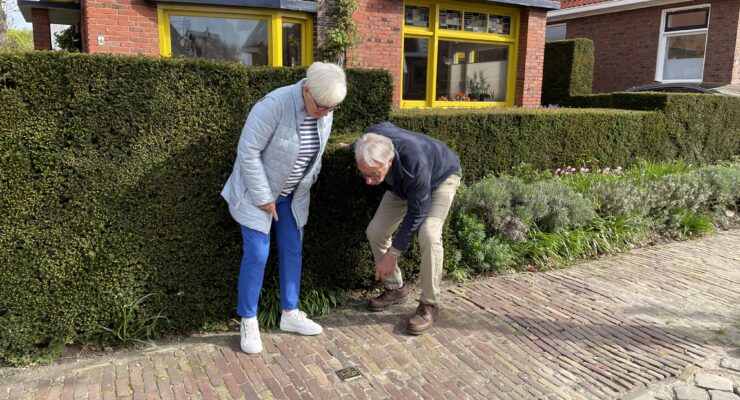Zoon van Winsumer verzetsman ziet zijn vader symbolisch terugkeren naar het ouderlijk huis 17 april 2026 Whatsapp Share Share Uitgerekend op de dag dat Winsum werd bevrijd door de Canadezen, op 18 april 1945, eindigde het leven van de Winsumer verzetsman Jan van der Laan in Duitsland. Hij zat in het beruchte concentratiekamp Neuengamme en stierf door uitputting en ziekte. De naam van Jan van der Laan is nu vereeuwigd. Voor zijn voormalige huis aan de Kloosterstraat nummer 4 in Winsum ligt nu een Stolperstein. Zijn zoon Wilte was vandaag getuige van de plaatsing van de steen, een ‘struikelsteen’ van messing die herinnert aan de mensen die door de Duitsers zijn omgebracht in de oorlog. Boekhouder Jan van der Laan zat bij de verzetsorganisaties Binnenlandse Strijdkrachten en de Knokploeg Winsum. Hij hielp bij het huisvesten van onderduikers en bij het verbergen van wapens en munitie. Op 16 februari 1945 werd hij samen met twaalf andere Winsumers gearresteerd door de Sicherheidsdienst. Burgemeester Hans Broekhuizen maakte tijdens zijn toespraak een link tussen het verleden en het nu. “Deze kleine steen herinnert ons aan een mens van vlees en bloed. Iemand met dromen, geliefden en een plek in onze gemeenschap. Een Stolperstein brengt mensen terug in de gemeenschap van waaruit ze weggerukt zijn. Ze herinneren ons aan de kwetsbaarheid van een samenleving waarin medemenselijkheid plaatsmaakt voor uitsluiting en haat.” (verhaal gaat verder onder de foto) (burgemeester Hans Broekhuizen praat met belangstellenden bij de plaatsing van de Stolperstein voor de woning aan de Kloosterstraat 4 in Winsum © Omroep Het Hogeland/Eemsdelta) Overhoop Wilte van der Laan was bijna tien jaar oud toen zijn vader door de nazi’s uit het ouderlijk huis aan de Kloosterstraat werd gehaald. Hij is met een aantal andere familieleden naar de plaatsing van de Stolperstein gekomen. “Het is best emotioneel om hier te staan”, zegt Wilte met vochtige ogen, net nadat de Stolperstein in de stoep is gelegd. Hij houdt een korte toespraak. “Na de arrestatie van mijn vader lag het gezin overhoop.” Van der Laan vindt het belangrijk dat er nu een fysieke herinnering aan zijn vader is in de Kloosterstraat. “We danken de initiatiefnemers en de gemeente dat dit mogelijk is gemaakt.” Het huis waarvoor de Stolperstein in de stoep is gelegd, wordt nu bewoond door Egbert en Jenny Kruidhof. “Toen we hier kwamen wonen hoorden we het verhaal over Jan van der Laan”, zegt Janny. “Tot onze verrassing kwam een paar jaar geleden bij ons een man aan de deur, tijdens een open dag van Joodse huizen. Die man was toen al in de tachtig, en die vertelde het verhaal van zijn vader. Dat was heel indrukwekkend.” (verhaal gaat verder onder de foto) (de huidige bewoners van de Kloosterstraat 4 Jenny en Egbert Kruidhof bekijken de Stolperstein © Omroep Het Hogeland/Eemsdelta) Wat betekent het voor hen dat er nu een Stolperstein voor hun deur ligt? Jenny: “Ik vind het prachtig. Deze man heeft hier gewoond. Hij heeft het huis zelf ontworpen. Het is zijn huis en wij mogen er in wonen, zo voelt dat.” “Dit maakt het compleet”, vult Egbert Kruidhof aan. “Er is altijd al veel aandacht voor dit bijzondere huis geweest, en nu komt dit er bij. Nu is de geschiedenis rond.” Ook elders in Winsum werden vrijdag Stolpersteine gelegd, tien in totaal. Het gaat om vier stenen voor het Joodse gezin De Vries-van Zuiden, broer en zus Comprecht en Essie de Vries, Reinder Tuitman en Sijbe Wendelaar en verzetsstrijder Murco Lamminga. Nieuws