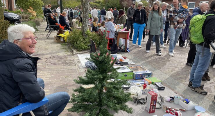 Een DVD voor vijftig cent tijdens de vrijmarkt in Winsum: ‘Ideaal, je kan een film kijken zonder reclame!’ 27 april 2026 Whatsapp Share Share Er ligt van alles op het kleedje uitgestald. Pokémon-kaarten , Donald Ducks, heel veel speelgoed. Én… een hele emmer met tientallen dakpanhaken. Tja, je zal ze maar net nodig hebben. Robbert staat met zijn gezin in het centrum van Winsum, hij heeft een plekje bemachtigd op de vrijmarkt bij de Reitdiepstraat. “Ideaal zo’n DVD, je kan gewoon een film kijken zonder reclame”, prijst Robbert zijn handelswaar aan. Een klant is kennelijk overtuigd en koopt vier DVD’s. “Ik vraag er vijftig cent per stuk voor”, zegt Robbert. “Misschien moet ik straks weer even terug naar mijn woonplaats Adorp om wat nieuwe te halen. Ze komen allemaal uit mijn eigen collectie. Maar ik heb ze zelf allemaal al vier keer gezien, dan kan je ze net zo goed verkopen.” Robbert heeft ook een hele emmer met dakpanhaken staan. “Voor een klein prijsje. Ik heb onlangs mijn dak vernieuwd, en dan heb je deze haken echt nodig. Maar ik vrees dat ik die niet meer kwijtraak.” De oude Donald Ducks van zijn dochter gaan makkelijker van de hand. “Die kosten tien cent per stuk. Daar kan je ze niet voor laten liggen, toch?” (Robbert deed met zijn gezin goede zaken op de vrijmarkt, vooral de Pokémon kaarten vonden gretig aftrek © Omroep Het Hogeland/Eemsdelta) Gemoedelijk Tientallen standhouders verkochten vandaag hun spulletjes in Winsum. In grote steden moet je al weken van tevoren een plekje reserveren voor de vrijmarkt, maar in Winsum gaat dat een stuk gemoedelijker. Waar er nog ruimte is, mag je je kleedje neerleggen. Dat leidt nergens tot verhitte discussies. Gewoon eem normaal doen. (de veertig jaar oude kerstballen van Grietje waren snel verkocht © Omroep Het Hogeland/Eemsdelta) Bijzondere spullen Naar schatting duizenden mensen bezochten maandag de vrijmarkt. In de Kloosterstraat zit Grietje achter haar kleedje. “Ik had om half acht mijn spulletjes uitgestald. Toen kwamen de eerste belangstellenden al. Die struinen in alle vroegte de vrijmarkt af of er nog bijzondere spullen tussen staan.” Ze heeft rond het middaguur al heel wat verkocht. “Een kofferset, schoenen, een koeltas, een wakeboard. En kerstballen van veertig jaar oud! Die waren heel snel weg. Ik denk dat ik in totaal voor zo’n honderd euro heb verkocht. Dat valt zeker niet tegen.” (De opbrengst van alle spulletjes die hier werden verkocht komt ten goede aan kankeronderzoek voor het UMCG © Omroep Het Hogeland/Eemsdelta) (Muziekvereniging De Bazuin speelde het Wilhelmus © Omroep Het Hogeland/Eemsdelta) Nieuws